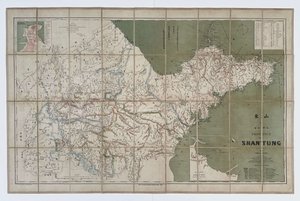 Puncture lines connecting in the port of Chefoo (Yantai) in the north of the Shandong Peninsula (opened for foreign trade in 1861) indicate steamer routes to Tientsin (Tianjin), Niuchuang (Yingkou) and Shanghai. The map also marks the villages of We-ha-wei (future British leased territory, 1898-1930) on the northern coast and Ching-Tao (future German colony of Tsingtao, 1898-1914), which controlled the entrance to “Chiaochou” Bay on the southeastern coast of the province.