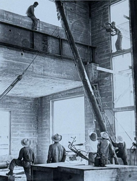 Over 25 photographs are related to Weihe, Frick and Kruse. A large group photo shows the architects and engineers working for the firm at Clark Air Base. Several photographs show employees working at their desks and at construction sites. There are also photographs showing structures at Clark Air Base and the Ayala Bridge Post Exchange. Several photographs are views of the destruction of Manila, including the ruins of the Manila Post Office and the Legislative Building, and buildings reading “Terminal Building” and “UST Restaurant.”