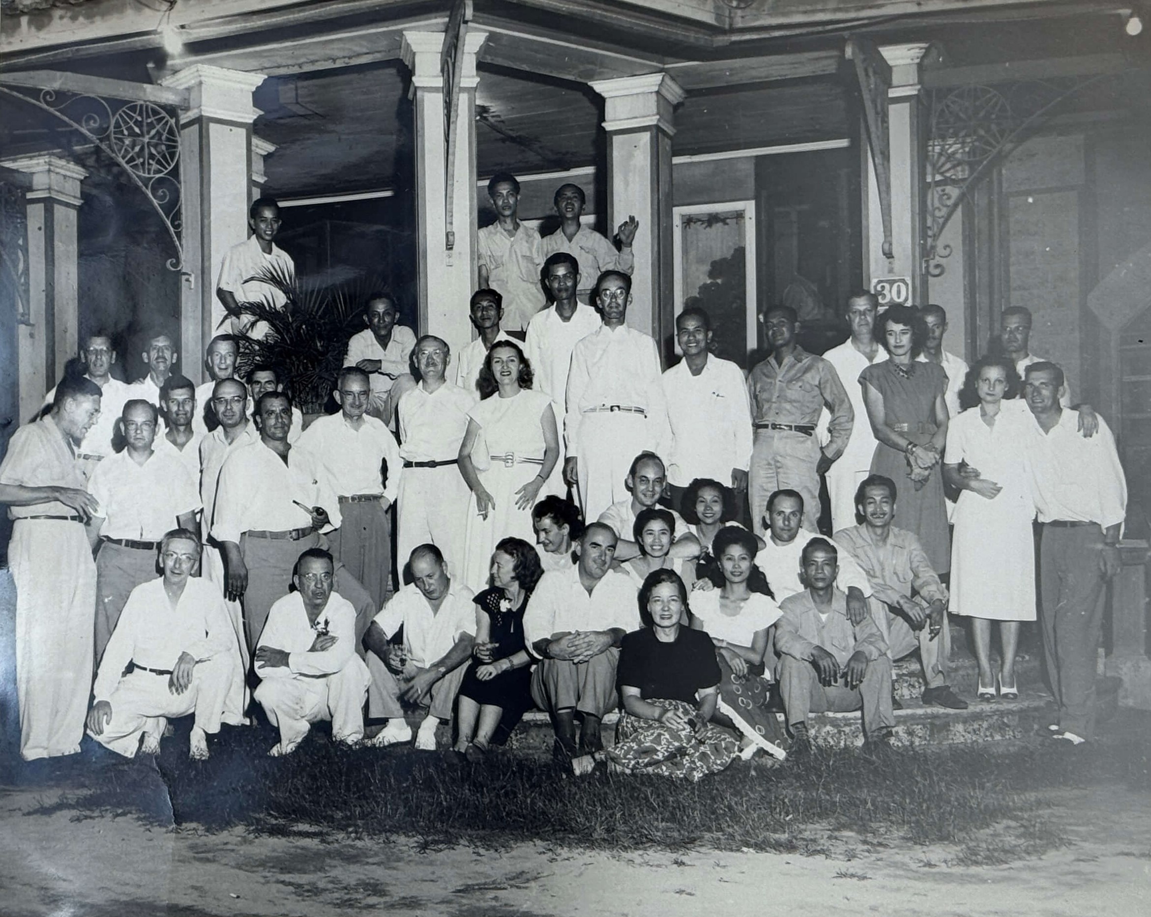 Over 25 photographs are related to Weihe, Frick and Kruse. A large group photo shows the architects and engineers working for the firm at Clark Air Base. Several photographs show employees working at their desks and at construction sites. There are also photographs showing structures at Clark Air Base and the Ayala Bridge Post Exchange. Several photographs are views of the destruction of Manila, including the ruins of the Manila Post Office and the Legislative Building, and buildings reading “Terminal Building” and “UST Restaurant.”