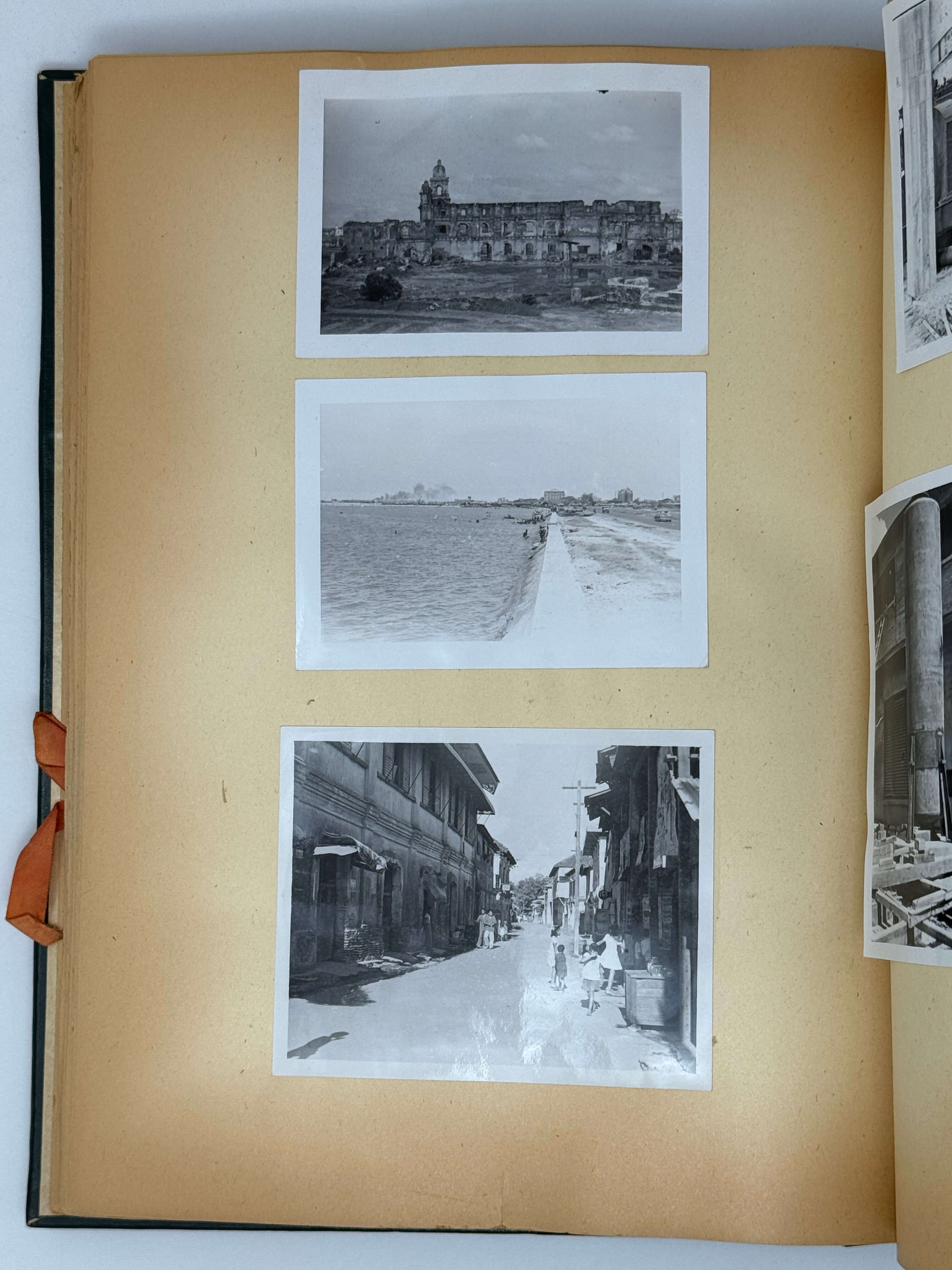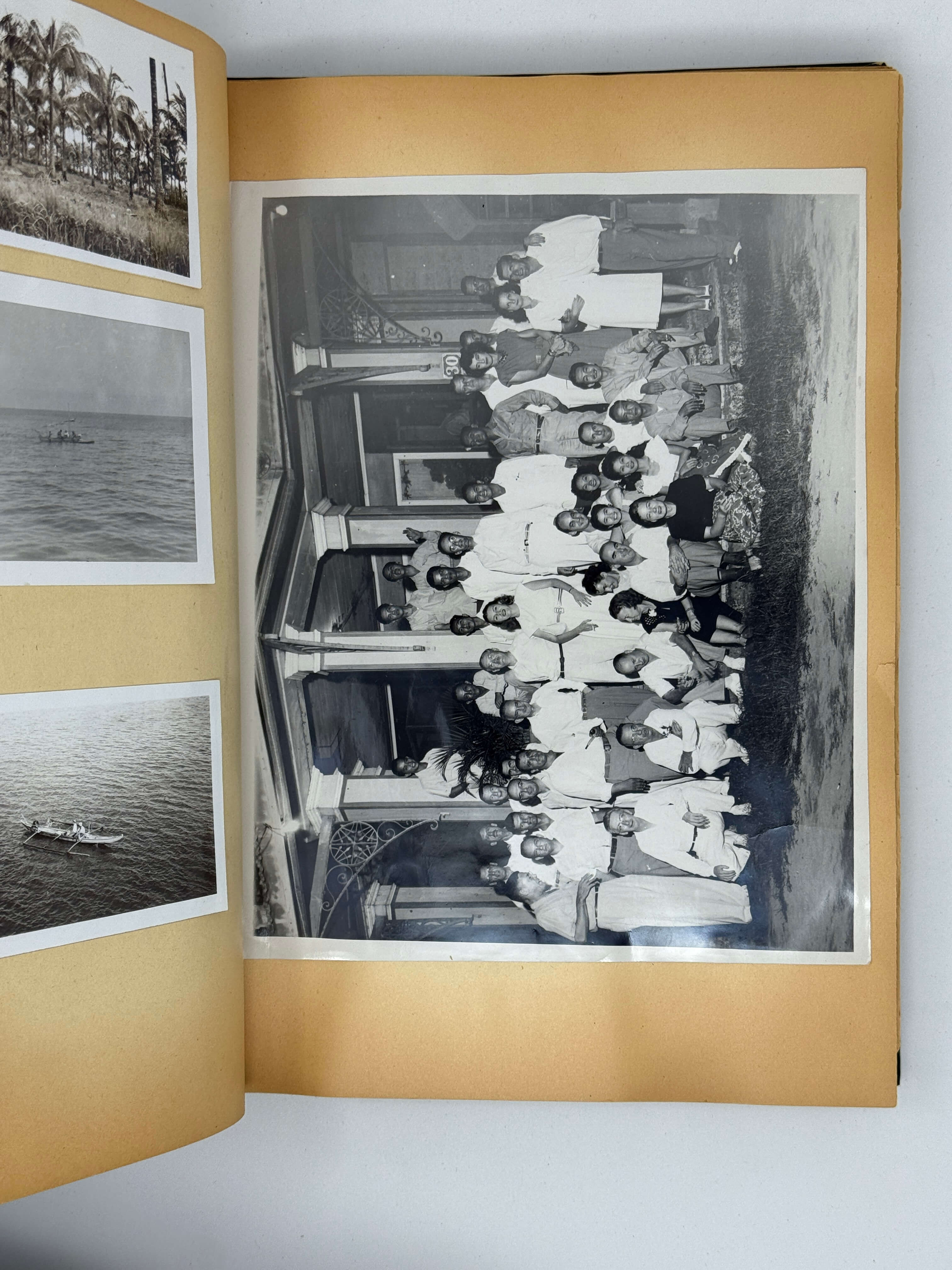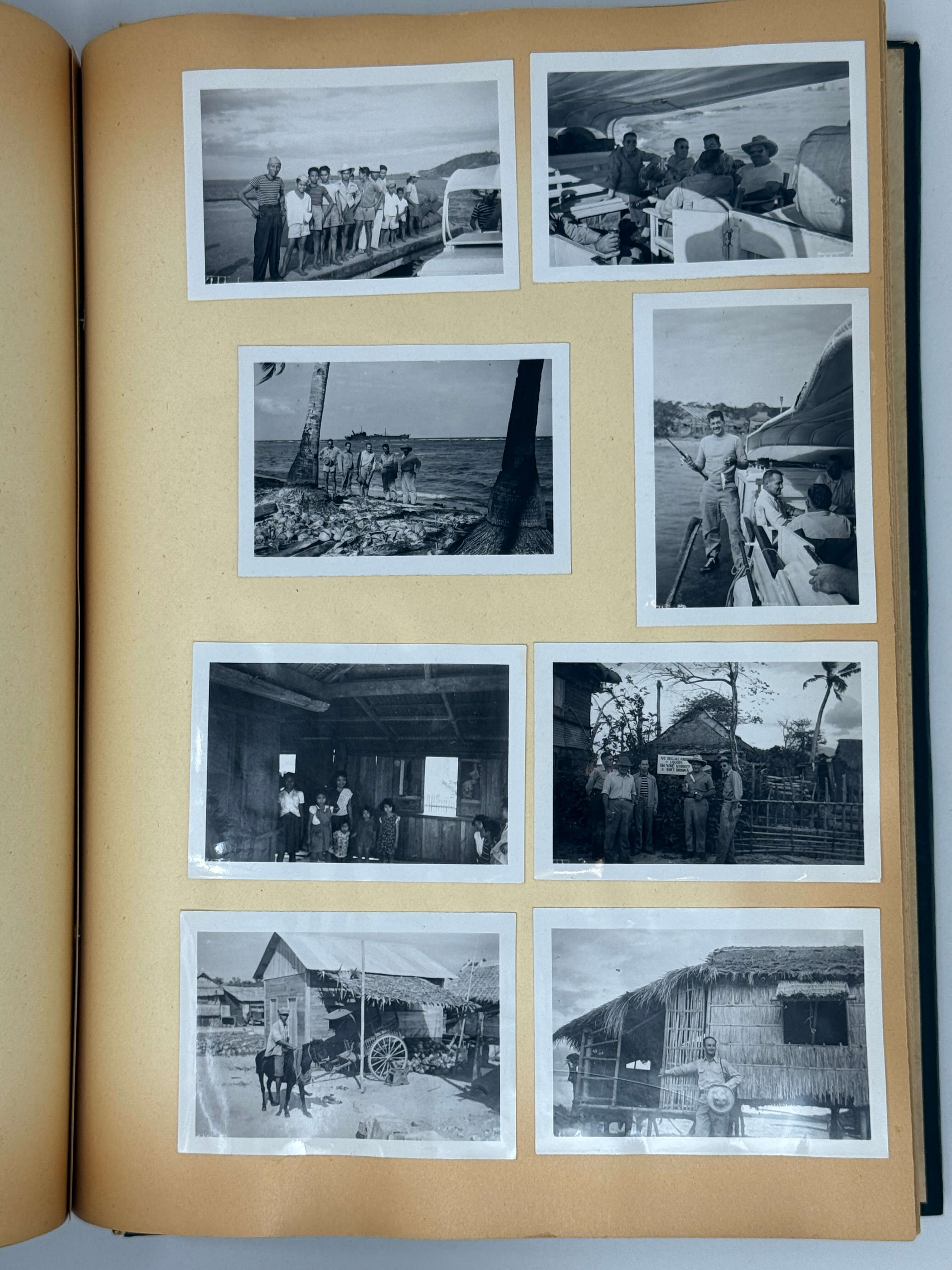 Other photographs in the album show the compiler’s journey across the Pacific and the docking of the ship he took, where a gangway reads “52nd Trans. Med Port – Transportation Services Philippines.” They also show snapshots of the compiler and his friends at leisure.
