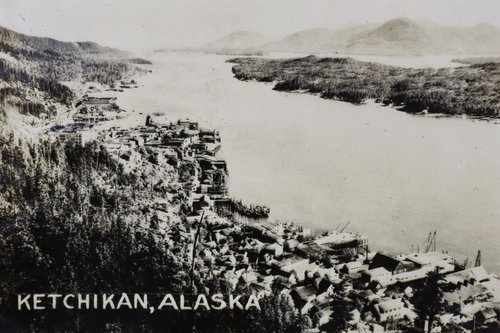 Fifty photos at rear and several images throughout the album show the villages of Sand Point & Unga on the neighbouring Popof and Unga Islands of the Shumagin group, south of the Alaska Peninsula. The photos were apparently taken in ca. 1942-1944 during the compiler’s work there and depict both villages in great detail, showing local cod cannery and saltery, general stores, “Russian church” (St. Nicholas chapel) in Sand Point, U.S. Marshall’s house & office, jail, school house, liquor store, “blacksmith shop” in Unga, &c. Three large gelatin silver panoramas also show Unga village and harbour; one photo is captioned “Unga, Alaska” in negative. Unga became a ghost town when the last Aleut family left for Sand Point in 1969.