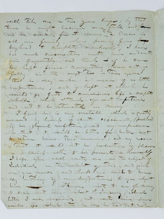 I find he is very irratable [sic!], which it greatly increased by <…> of spirits occasionally <…> and my impression is that it would be better for him not to return home this summer <…>