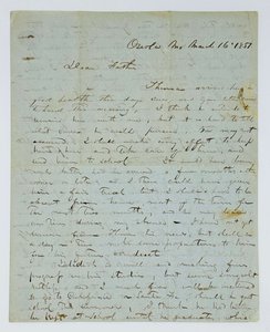 Jedidiah is well and making fine progress in his studies, but seems somewhat restless and I must fear will be inclined to go to California or Santa Fe, should he quit school this summer. I think he had better be kept at school until he graduates, which will take one or two years longer, by that time he might become more stable and firm in his views, for it seems to be a crisis in all our family, when passing from boyhood to complete manhood. I have had much conversation with him and write him frequently, and think if he can be kept from committing some act of folly in the next two or three years, that he may make a man of no little importance and if kept at school he would go forth to commence lide a complete scholar, which I think of vast importance and not to be estimated in many. <…>
