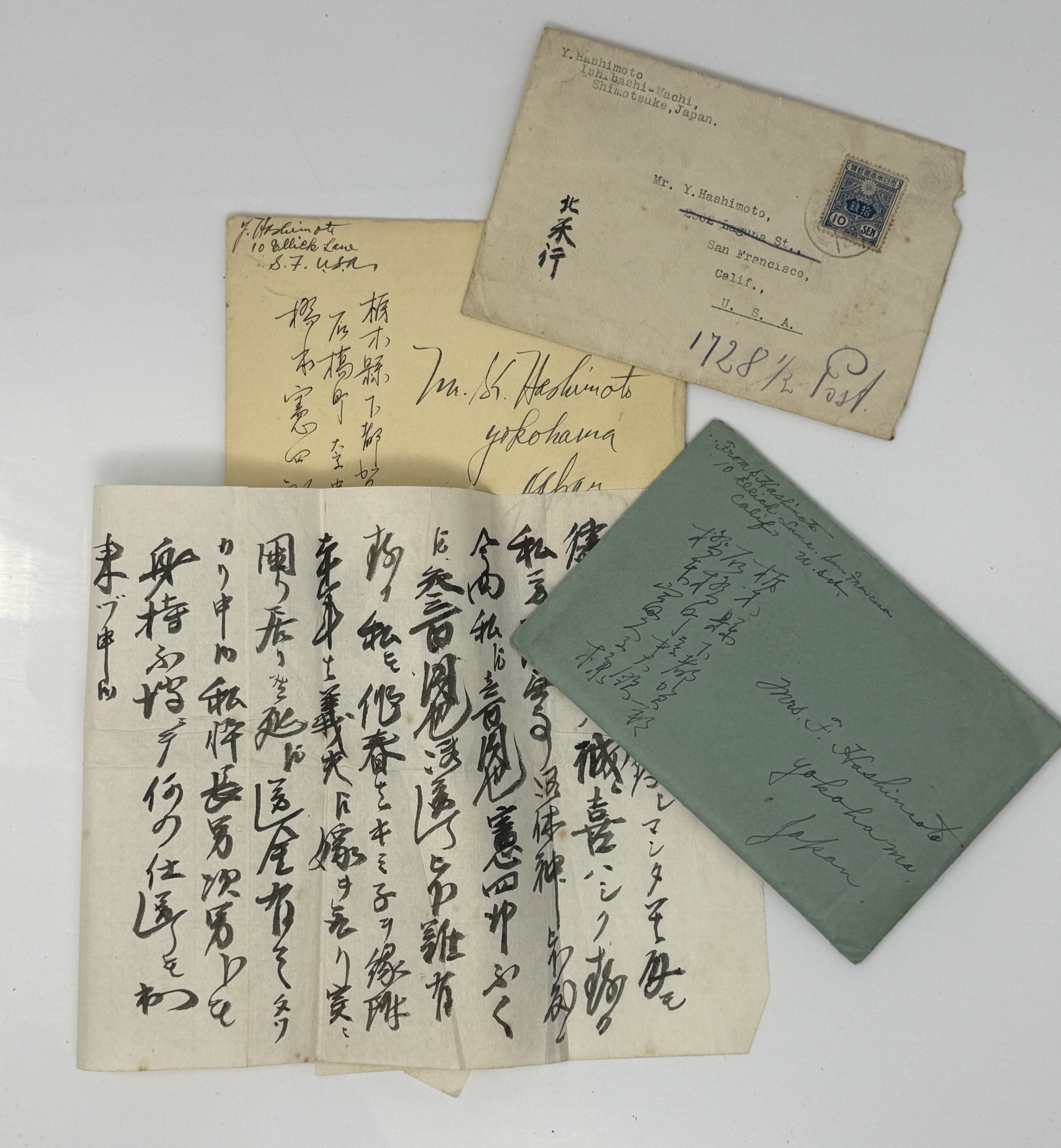 — Sumiye Hashimoto. The handwritten set of instructions in case of her death, addressed to her daughters. San Francisco: 23rd go June, 1947. [4] p. Together with the handwritten envelope. In Japanese.