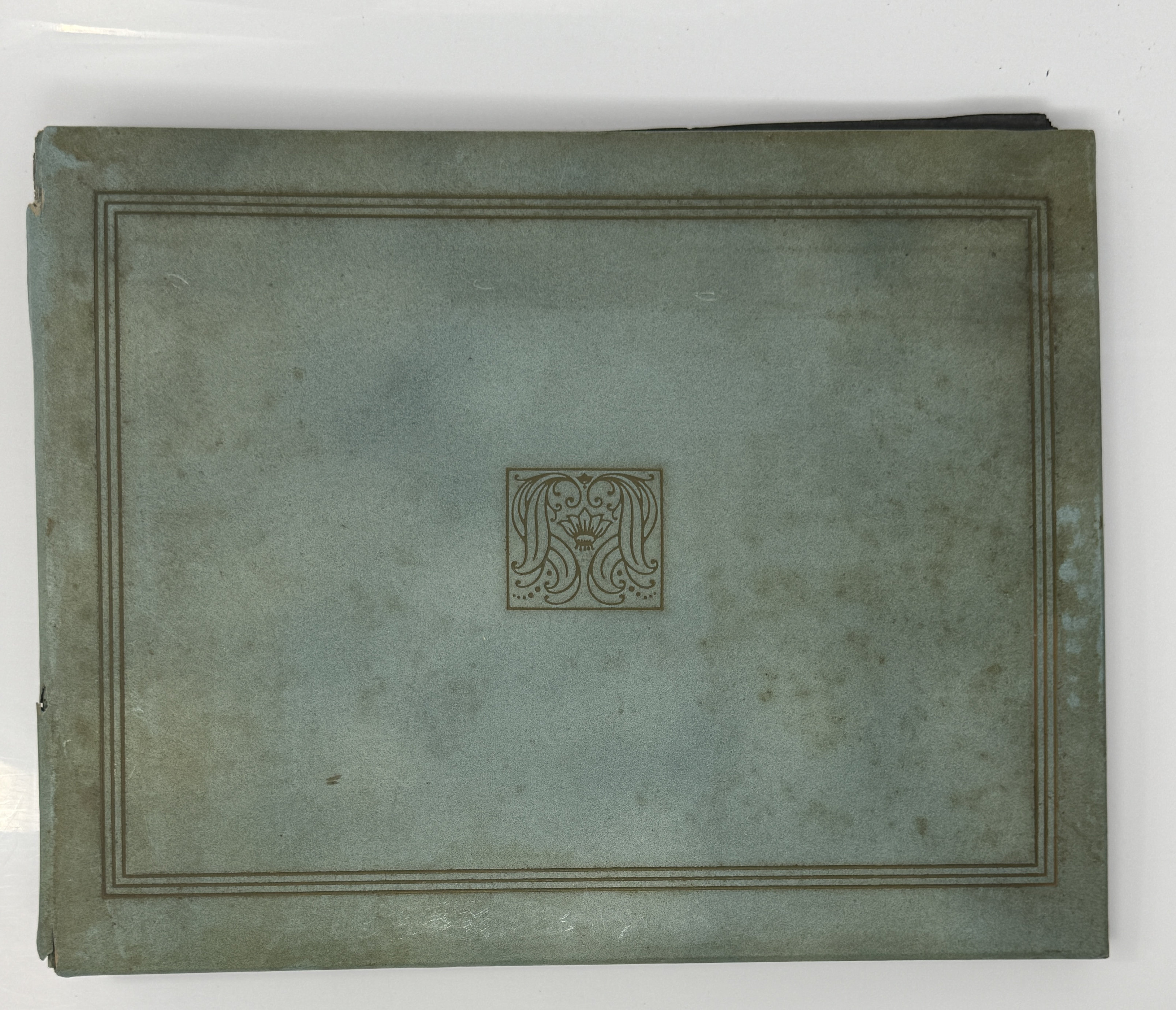 74 original photographs ranging from 3,5 x 9,5 in. to 2 x 2 in. 28 stock leaves (including 15 blank ones). 10,5 x 13 in. Green cloth boards. Boards are detachable, otherwise photos are in very good condition.