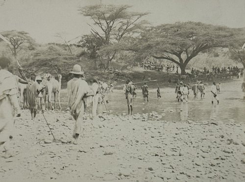 Historically Significant Collection of 34 Loose Original Gelatin Silver Photographs Taken during a Survey Travel Prior to the Construction of the First Ethiopian Railway from Djibouti to Addis Ababa, with Scenes of Dirt Road Travel on a Truck, Crossing Rivers, Views of Expedition Camps in Hurso and Mulu, a Market in Tadecha Malka on the Germama River, Addis Ababa, Catholic Mission in Dire Dawa, Portraits of French Expedition Members, Advisor to Emperor Menelik II Armand Savouré and His Family, Ethiopian Women and Children, &c. Ca. 1911-1912.