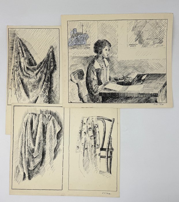 Watercolours varies in sizes from ca. 32 x 25,3 cm. (12.5 x 10 in.) to 26,2 x 20,5 cm. (10¼ x 8 in.) , ink drawings are 26,2 x 23 cm. (10¼ x 9 in.) to 24,2 x 16 cm. (9,5 x 6,5 in.). No folds or creases, in very good condition.