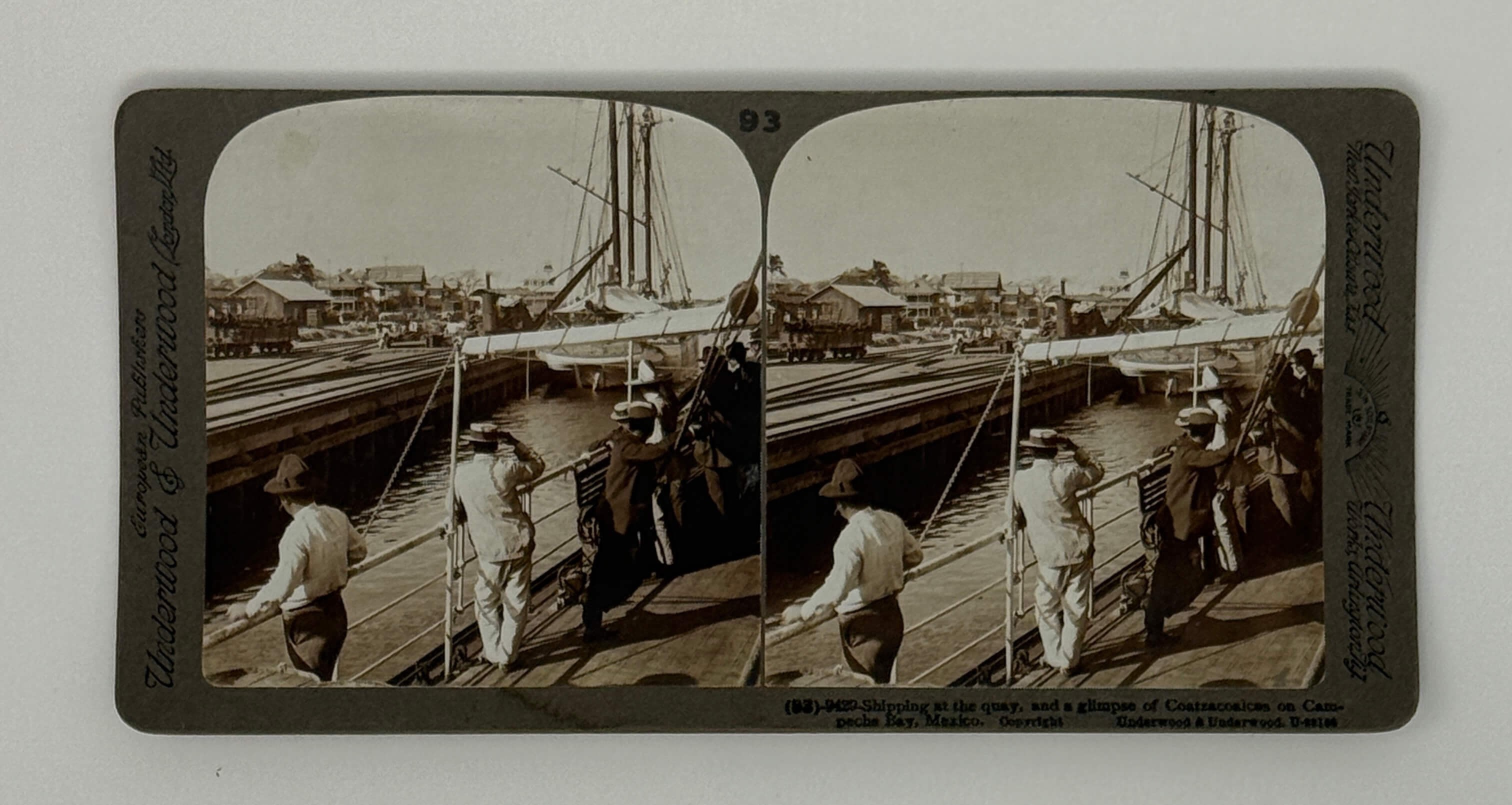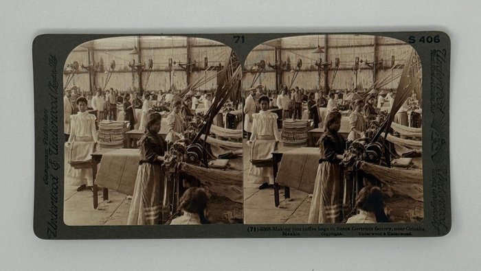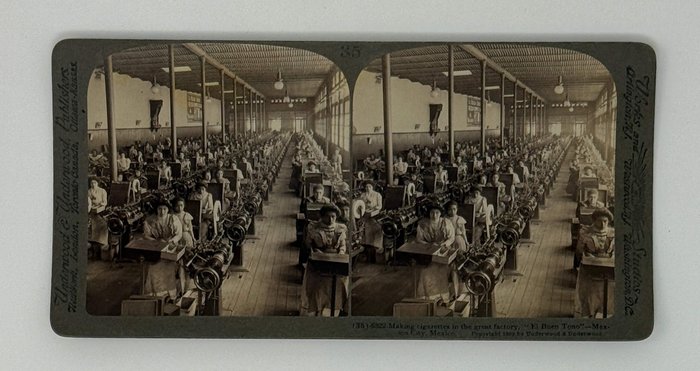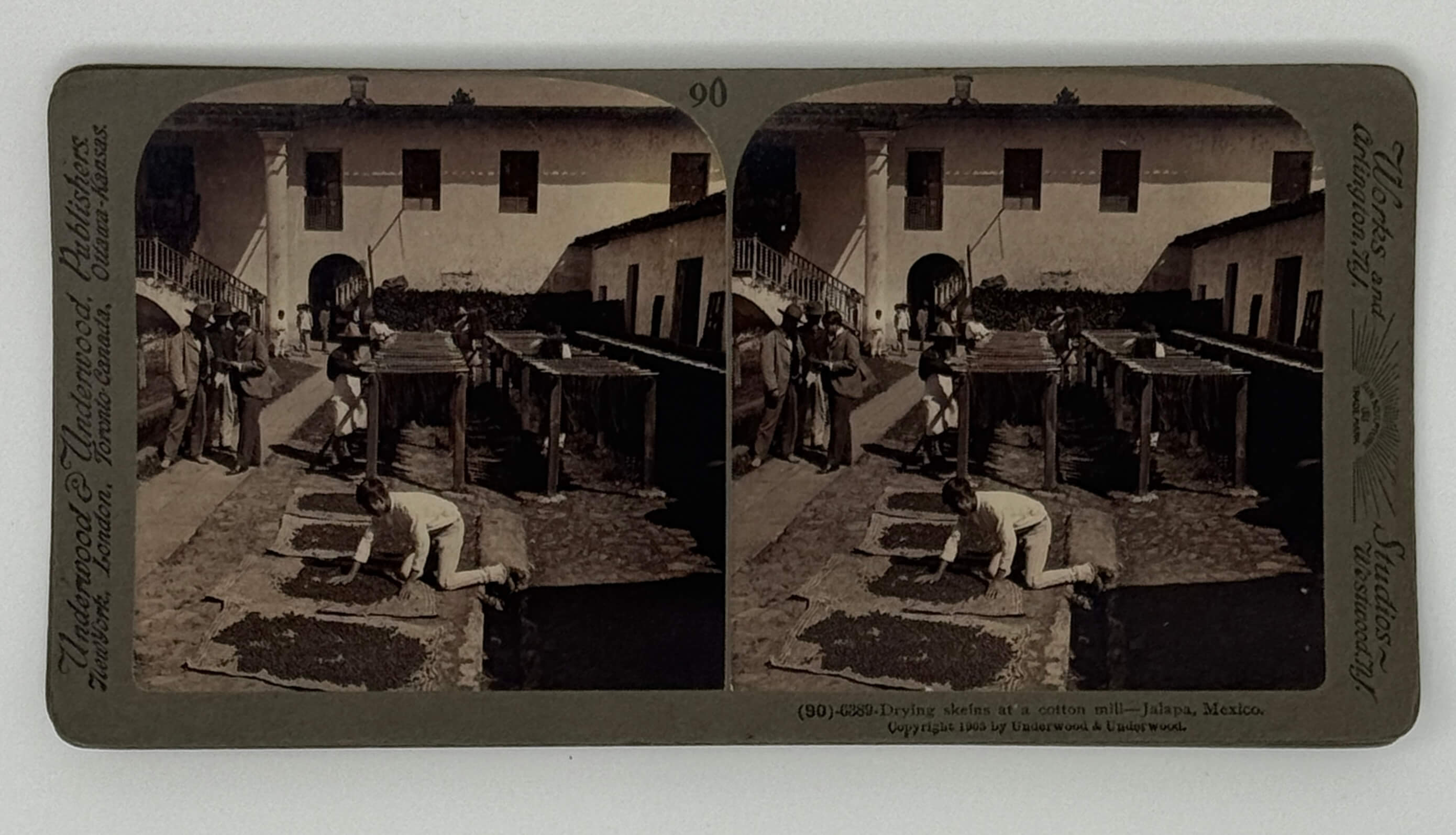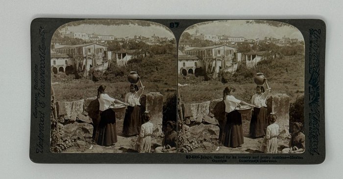 Ninety-four pairs of albumen stereoview photographs, including four duplicates, each pair ca. 7,5x15 cm (2 ¾ x 6 in) mounted on original grey ‘Underwood&Underwood’ cards. All photos are captioned at the bottom of the card, many has explanatory text at the back: a few paragraphs in English, and the translation of the main title of the photograph into Spanish, German, French, Danish and Russian. A few card mounts with wear and sign of a book-worm, but not affecting the images (except for the bottom margins of images number 32 ‘Calendar Stone’ and number 70 ‘Carpet Factory’), otherwise a very good collection of strong stereoviews.