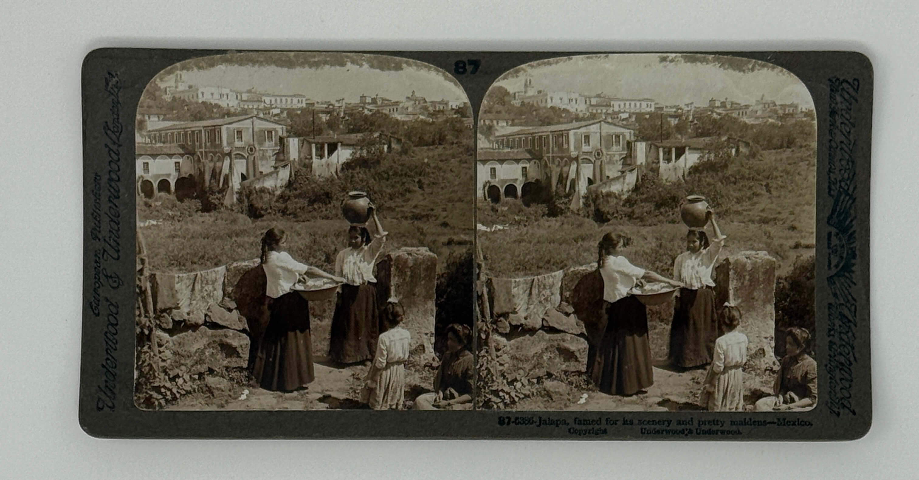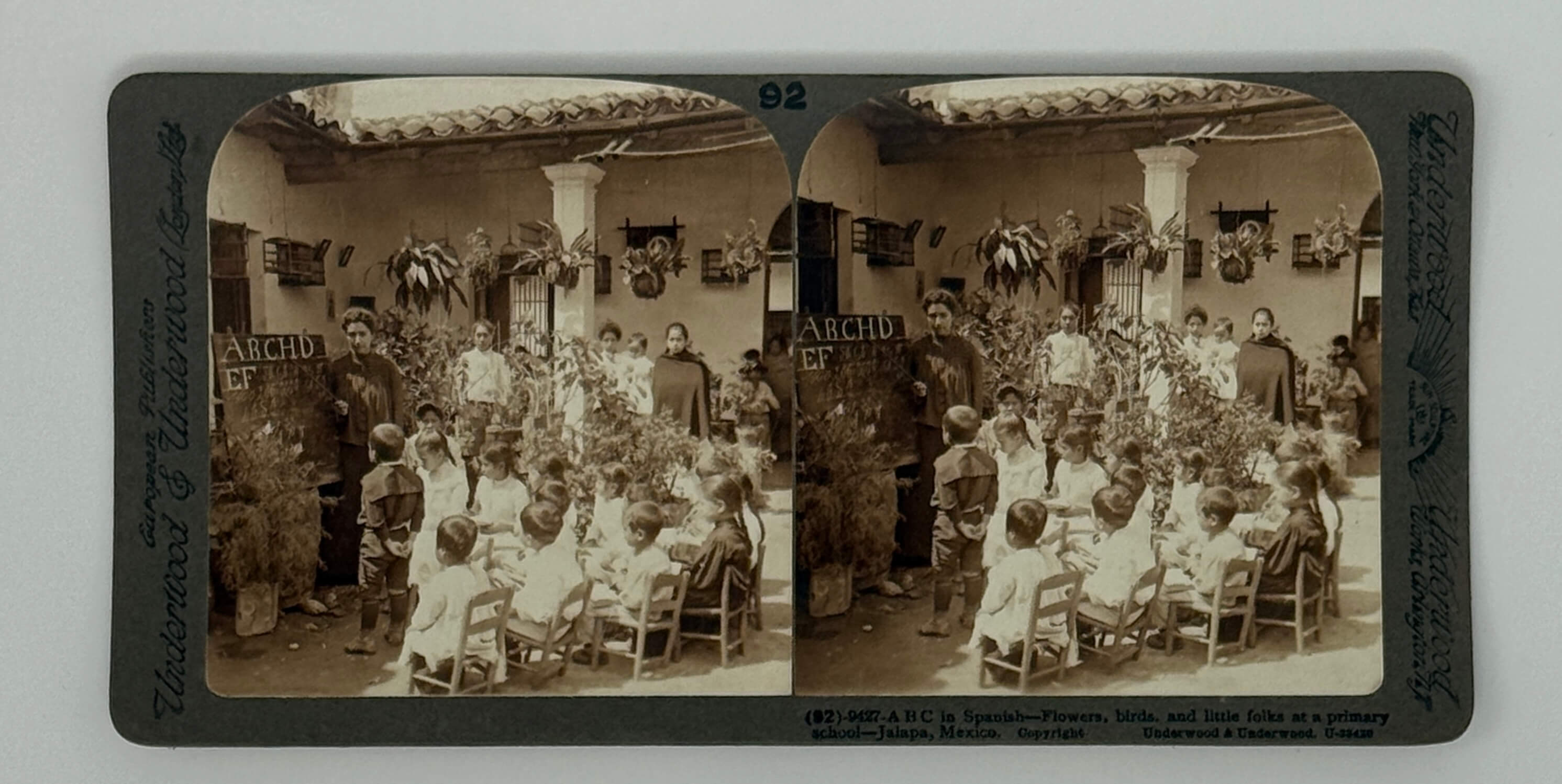 “Underwood & Underwood established itself in 1882 as a stereographic distribution company. The company was founded by two brothers, Elmer and Bert Underwood…. Underwood & Underwood were publishing twenty-five thousand stereographs a day by 1901…. Around 1900 Underwood & Underwood introduced boxed sets, with specific themes such as education or religion, and travel sets depicting popular tourist areas of the world.” (The Yellowstone Stereoview Page)