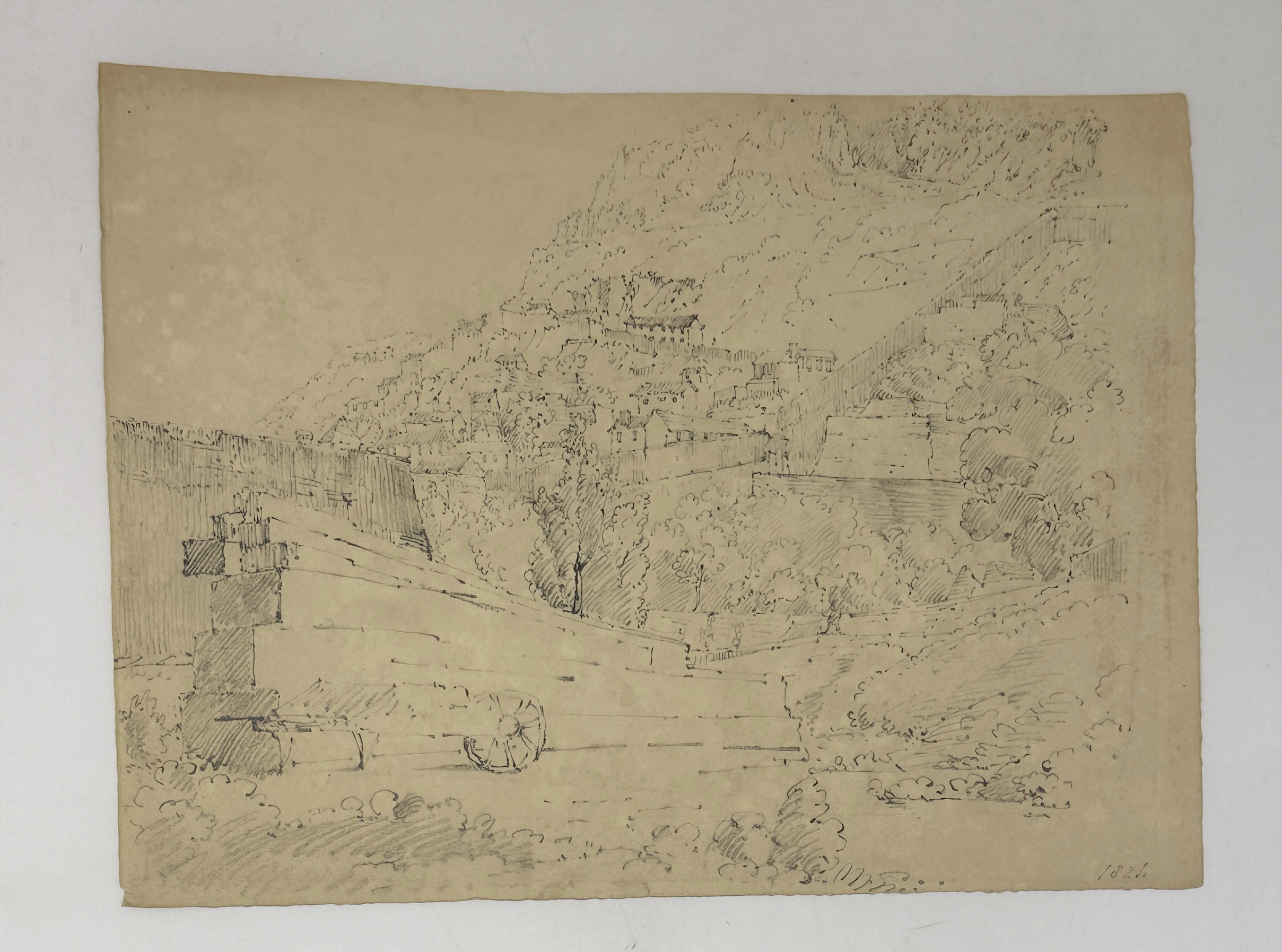 “South Part, Gibraltar from Ragged Staff.” Pencil drawing ca. 21x28,5 cm (8x11 in). Dated “1824” in pencil in the right lower corner.