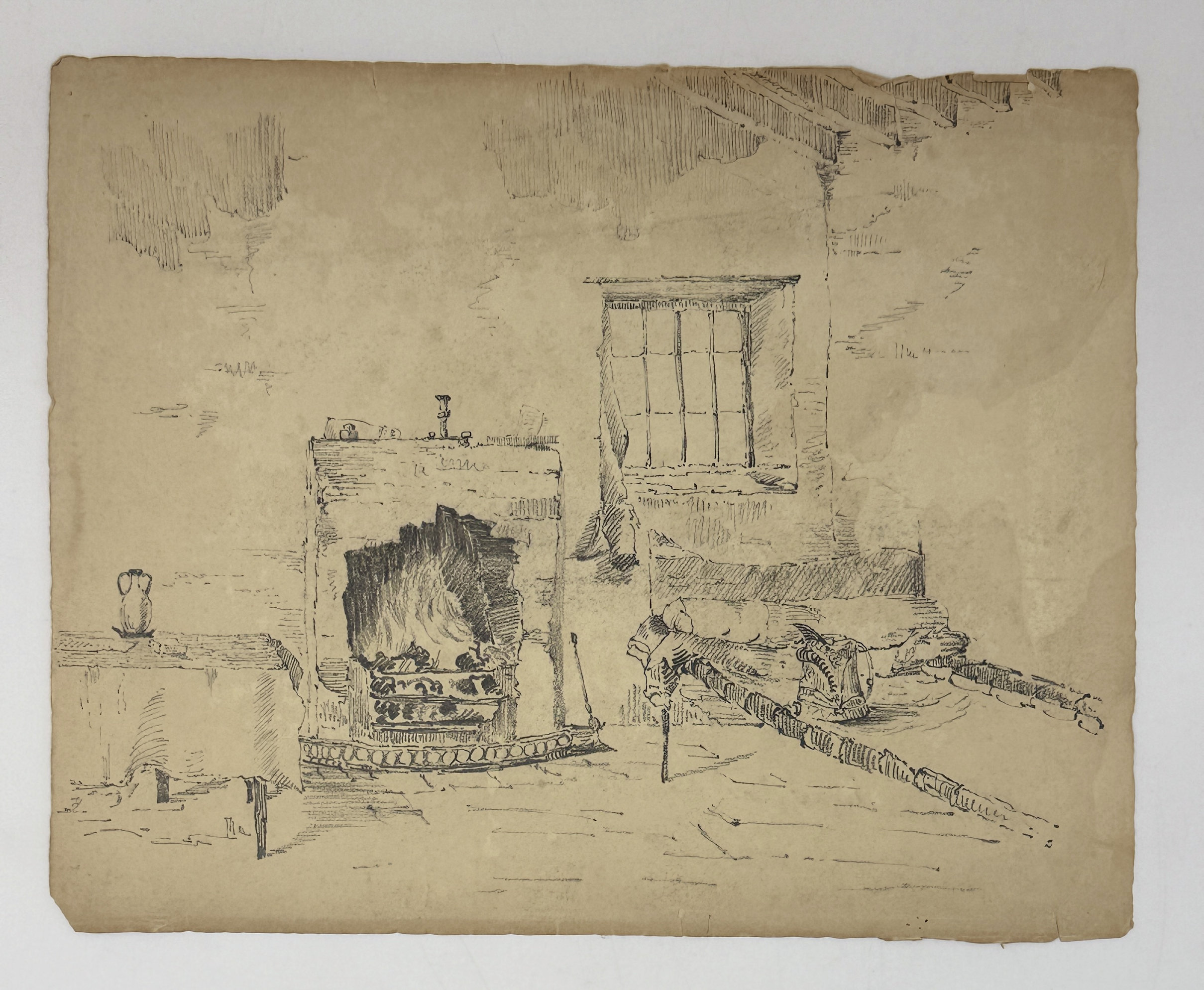 “Interior of the Officer's Guard Room at Ragged Staff, Gibraltar.” Pencil drawing ca. 24x30 cm (9 ½ x 11 ¾ in).