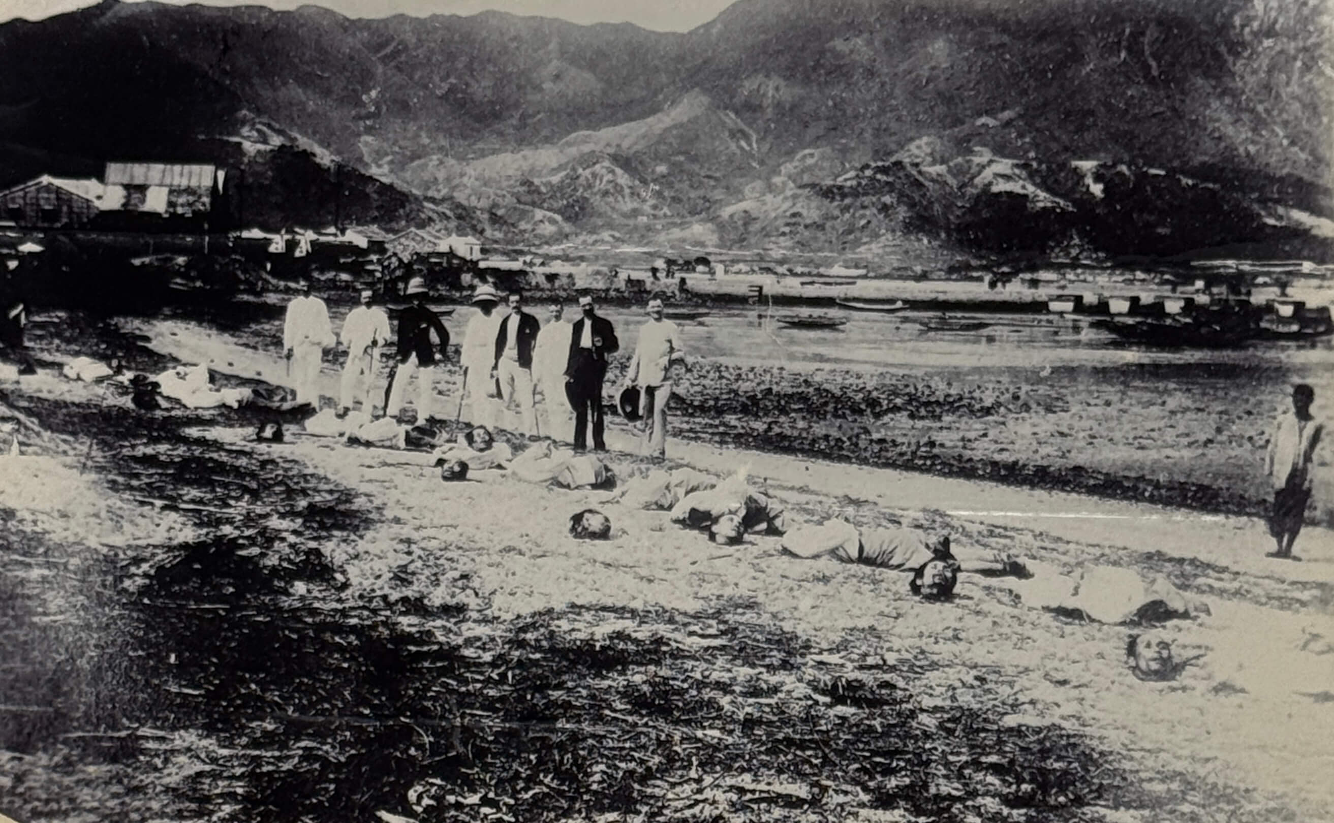 Interesting extensive collection of gelatin silver photos and phototypes of Imperial China in the late 19th – early 20th century. The gelatin silver photos include two large panoramic views of a Chinese village on a hill with vegetable gardens in the foreground; five images of public executions of Chinese “pirates,” “bandits,” and “looters” (including three large early 20th-century copied photos); vivid scenes of a Chinese barbershop (combing hair, cutting toenails, pulling teeth); portraits of a Chinese noble lady wearing a fengguan headdress, a nobleman in traditional costume, a street food seller, peasants on a rice field; views of the interior of Buddhist temples, &c.