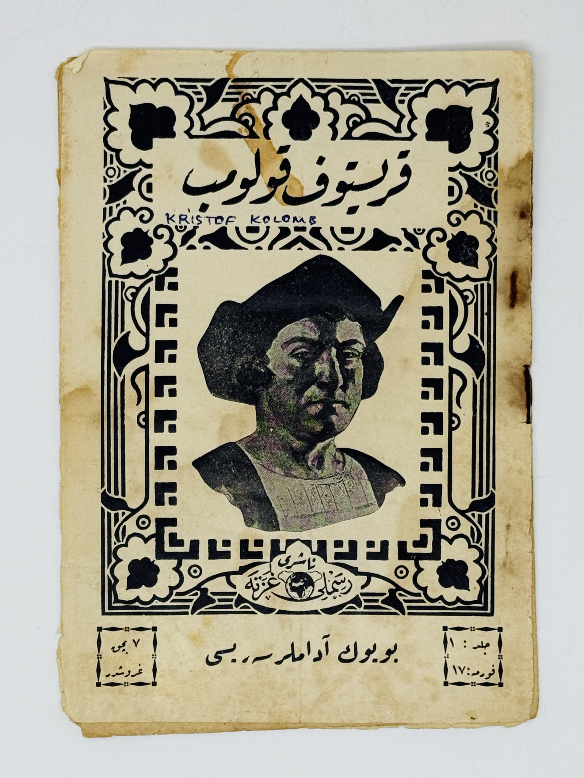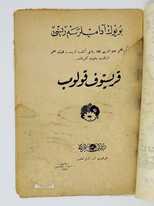 First and only edition. In Ottoman Turkish. The first dedicated biography of Christopher Columbus in Turkish. Black and white illustrations in text.