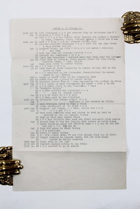 Overall, historically significant archive from the family of Owen Richard Morgan, a San Francisco and Oakland-based Welsh carpenter, offering rare, first-hand accounts of the Victorian Gold Rush and the early life of Welsh diaspora in California.