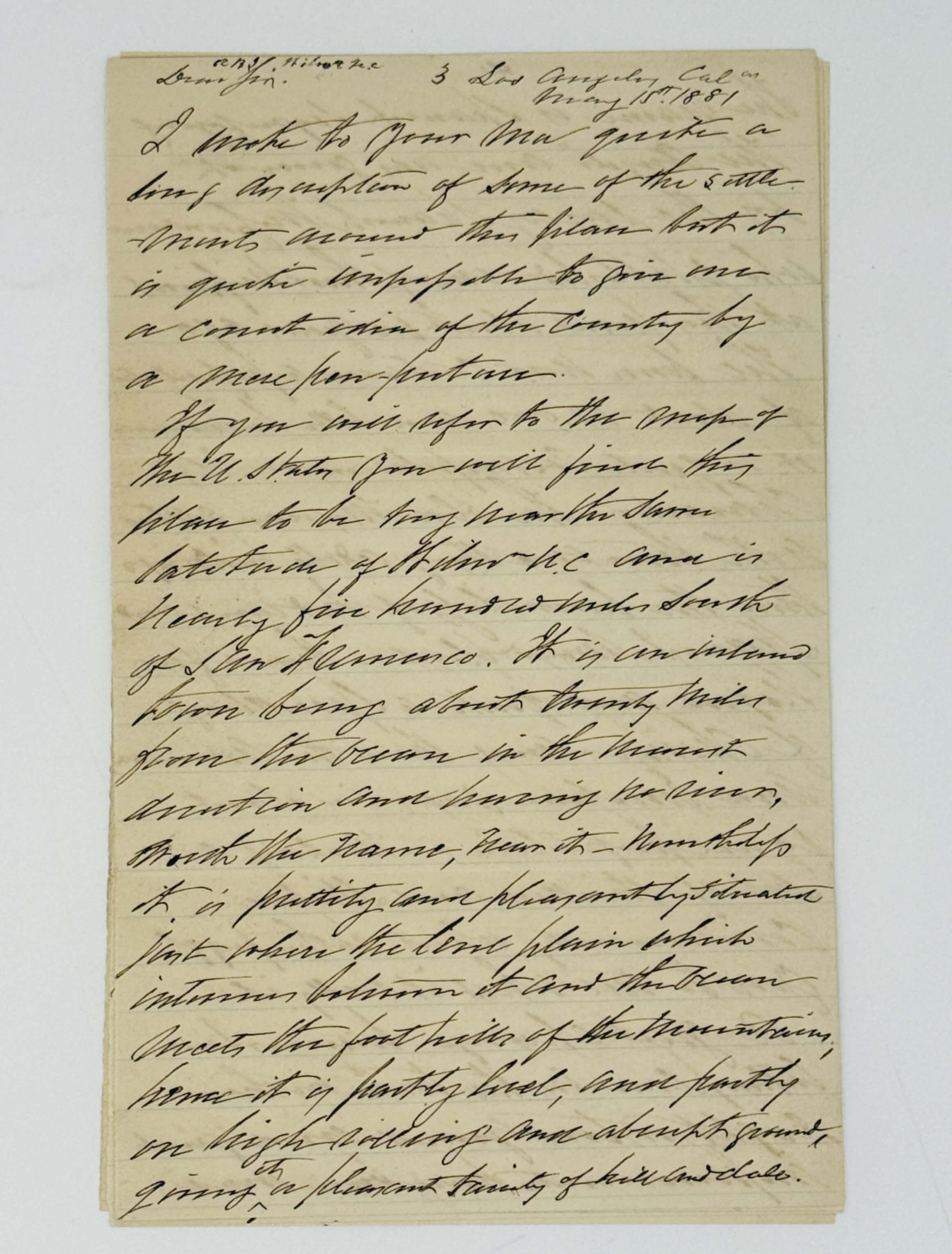 Overall, historically significant original content-rich letter, offering a first-hand account of Los Angeles just before the great land boom of the mid-1880s.