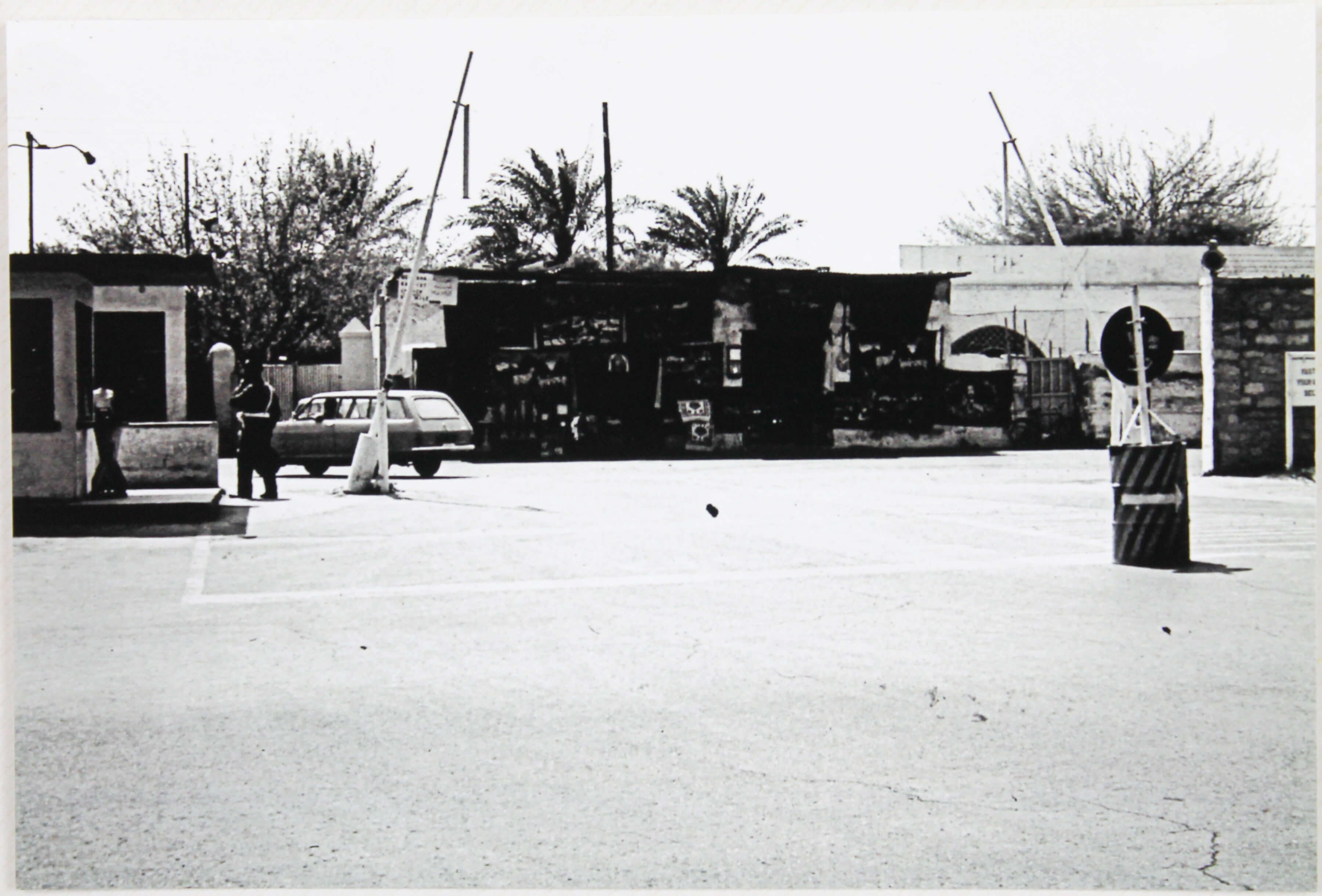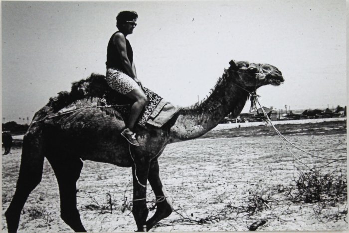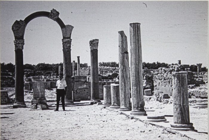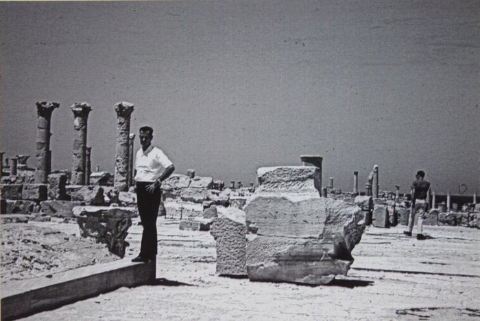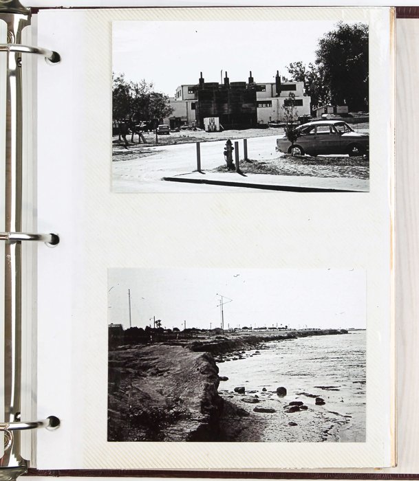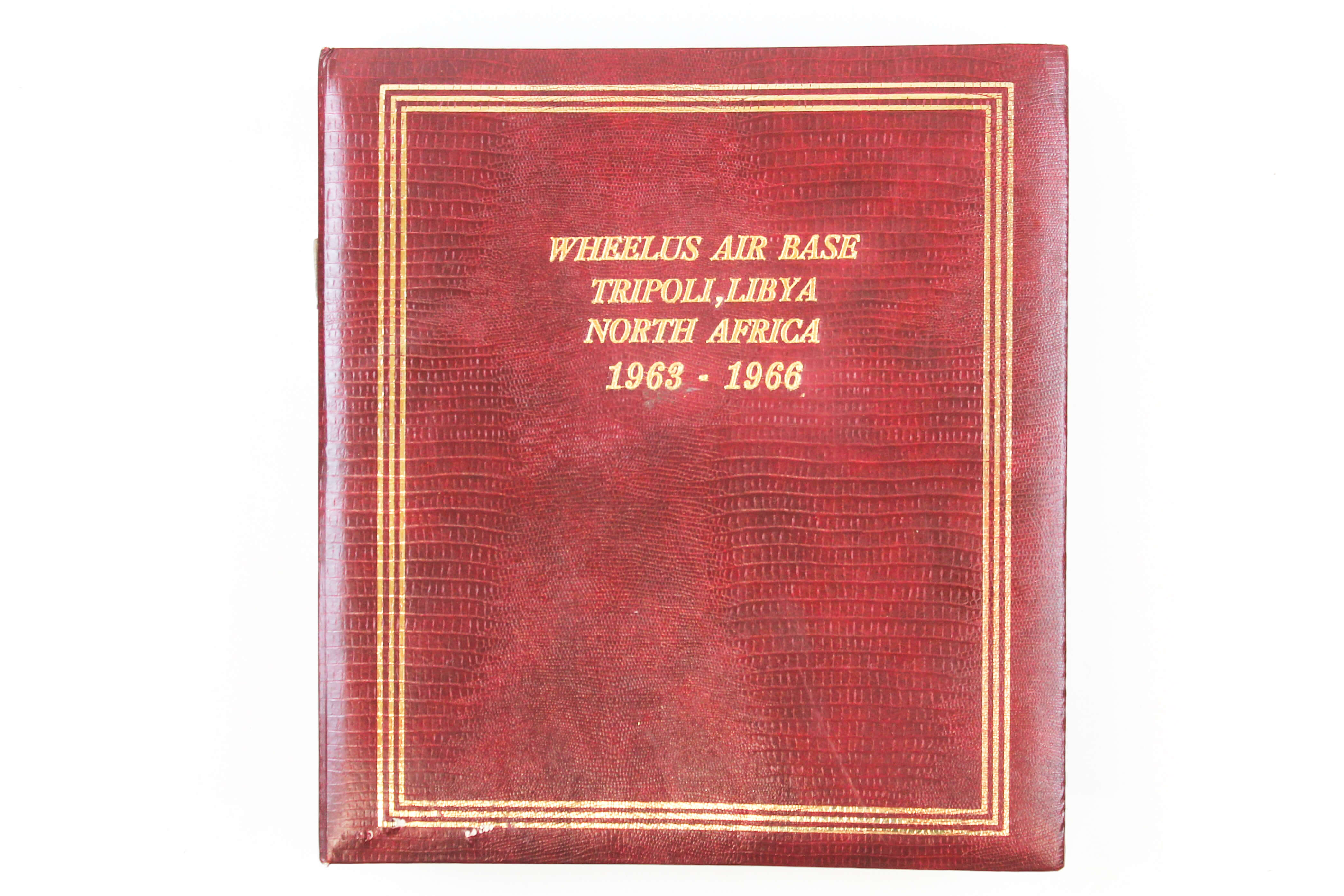 77 gelatin silver photos (including two color chromogenic prints) with the smallest one ca. 9x6,2 cm (3 ½ x 2 ½ in), the larger one ca. 19,1x25,4 cm (ca. 7 ½ x 10 in), and the rest of the photos ca. 10,1x15,2 cm (4 x 6 in). One photo with a period ink caption (in English) on verso. Most prints with machine-printed text: “Fujifilm Quality Dry Photo Paper, 7/29/2019 Printed at Walmart.” A custom-made morocco folder with gilt-tooled borders and title “Wheelus Air Base Tripoli, Libya, North Africa 1963-1966” on the front cover. A very good collection with strong, interesting prints.