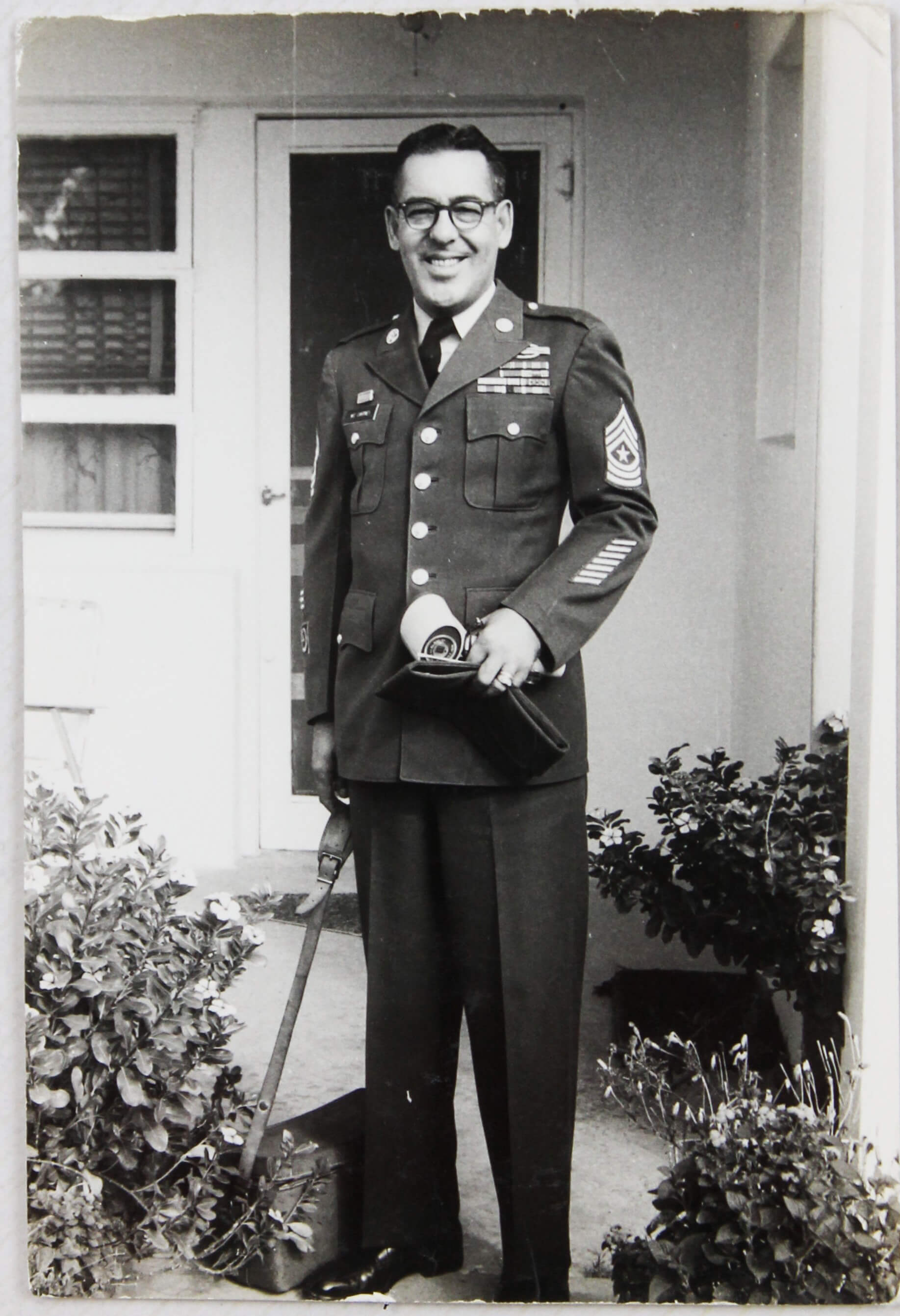 As follows from the collection, the photos were taken and collected by the family of a non-commissioned American serviceman stationed at Wheelus Air Base between 1963 and 1966. The album opens with a large-format image showing the serviceman shaking hands with another U.S. Army officer in an official setting, likely during a recognition or congratulatory event. A sign on the wall suggests that both men were affiliated with the U.S. Army Map Service, which operated in Libya at the time. Another image depicts a detailed map of the base, possibly prepared with the serviceman’s participation.