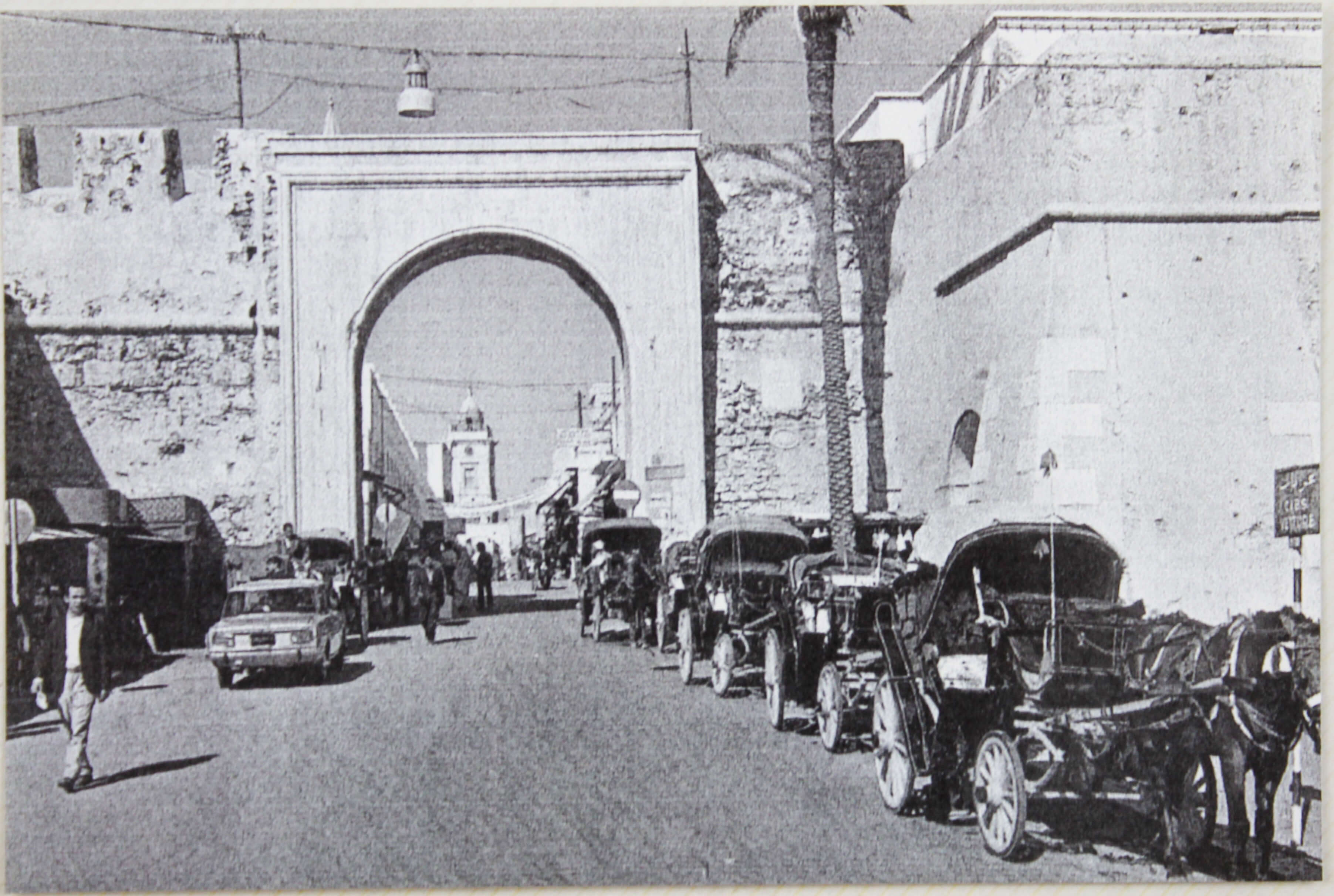 Over thirty excellent early photos portray Tripoli before the later war damage and the 1969 Libyan Revolution. The images show the Royal Palace, Bab Hawara Gate, Martyrs’ Square, the ruins of Leptis Magna, the Arch of Marcus Aurelius, and general city panoramas with visible cars and horse-drawn carts. Especially interesting are several candid urban scenes, showing a Santa Claus riding a camel and greeting children and their parents.