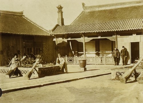 In Beijing, the focus shifts to historical landmarks, documenting the Summer Palace, Nine Dragon Screen, Ming Tombs, Temple and Altar of Heaven, and the iconic Chinese guardian lions. A dozen photographs of the Great Wall offer a rare glimpse of life along its slopes, with locals carrying goods in baskets and leading donkeys through the rugged terrain.