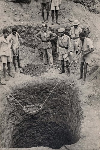 Oblong Octavo album ca. 19x27 cm (7 ¼ x 10 ½ in). 23 stiff card leaves. With 44 mounted original photographs of various sizes, including 42 gelatin silver and platinum photos ca. 13x18 cm (5x7 in), and two smaller gelatin silver photos ca. 9x14 cm (3 ½ x 4 ½ in). With six loosely inserted platinum photos, image size in average ca. 12x17 cm (4 ¾ x 6 ½ in). Nine photos captioned, signed “Bés” and /or numbered in negative, twenty-eight with period pencil ink captions in French on the margins. Loose photos: three captioned or signed (“Bés” or “Yann[?]”) in negative, five with period manuscript ink captions in French on the mounts. Period brown card binding fastened with a string. A painted scene with an African hut and a manuscript title “Conakry, 1935” on the front board. Boards soiled, with chipping and minor losses on extremities, one photo with a corner torn off but present, one of the smaller photos stained, one loose photo with a loss of a corner not affecting the image, several photos slightly faded, but overall a very good album.