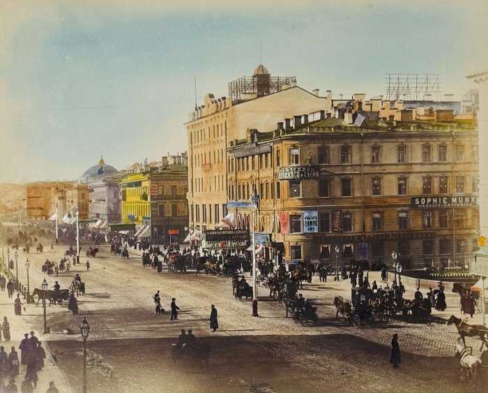 The collection also features fourteen excellent views of 19th-century Saint Petersburg produced by the studio of Moscow-based Austrian photographer Jean-Baptiste Avanzo (1853–?). As the owner of the prestigious "B. Avanzo" art salon on Kuznetsky Most, Avanzo was a central figure in the Russian art trade and became a full member of the Russian Photographic Society in 1904. His salon, a primary distributor for the era's finest topographical photography, operated until the outbreak of World War I.