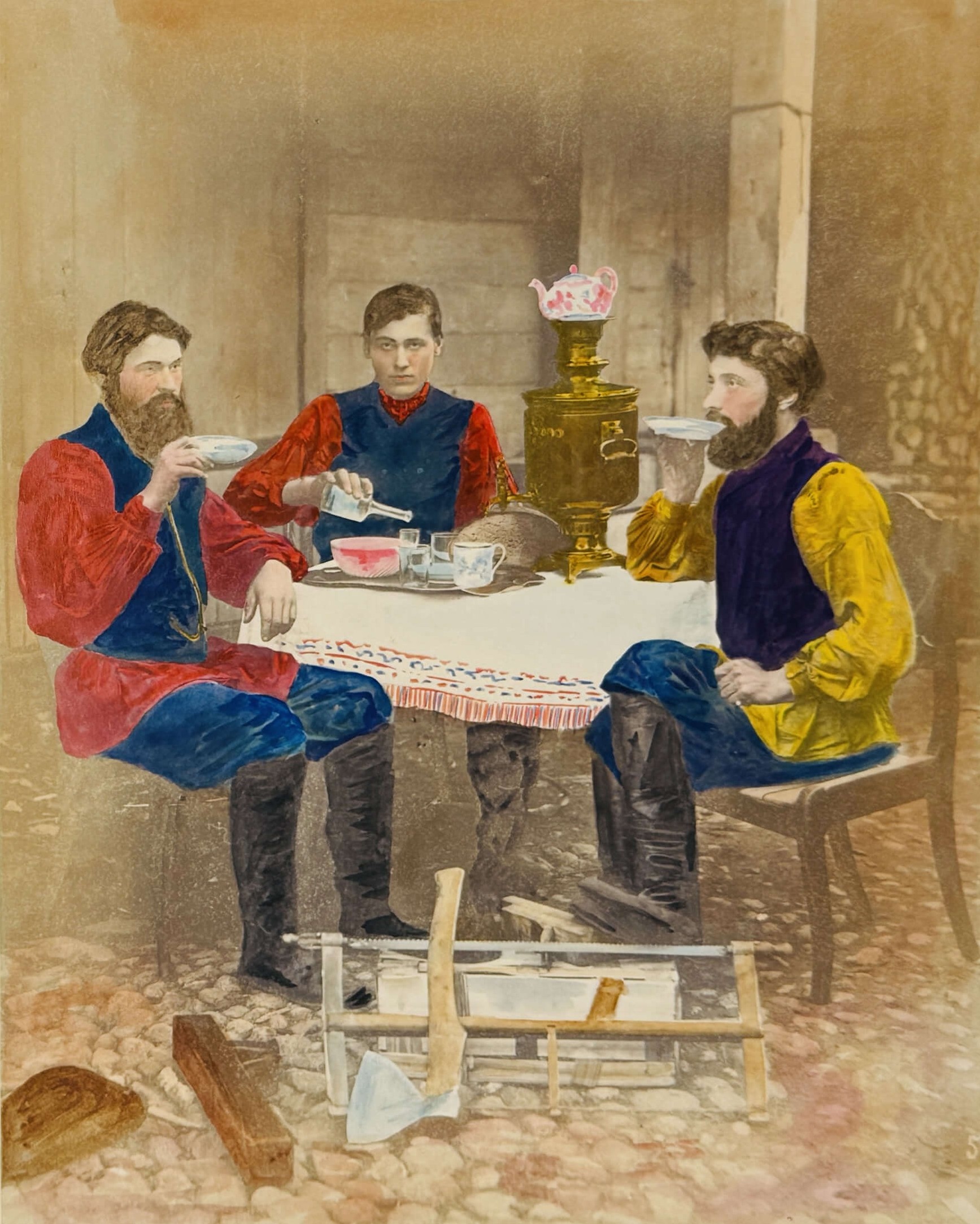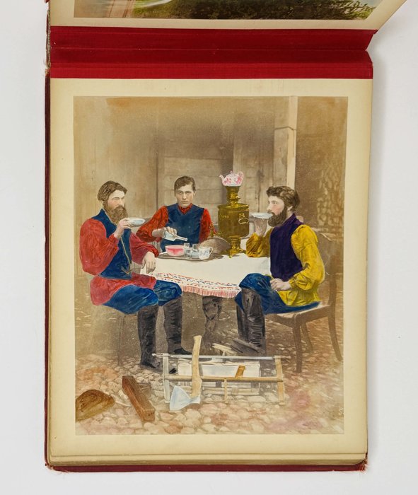 The collection contains thirty-three rare “Russian Types” photographs, depicting street vendors, water carriers, wood carriers, a "white" priest in full vestments, and peasant women in traditional kokoshniks (traditional Russian headwear). Interesting scenes include a Russian tea party, a troika (three-horse carriage), and various urban laborers like the izvozshchik (cabman). The photographs were produced by William Carrick (1827 or 1830 - 1878), a renowned Scottish photographer. Carrick opened a studio in St. Petersburg in 1859 with his partner, John McGregor. While he initially provided photographic studies for painters and produced art reproductions, he became one of the first photographers to venture out of the studio to capture "Rural Life." His work was so culturally significant that in 1862, Crown Prince Nicholas awarded him a diamond ring for his "Russian Types" carte-de-visite series. Over the following decade, Carrick produced more than 700 "Type" photographs across the St. Petersburg region, the Novgorod province, and Finland, creating what remains the preeminent visual illustration of the vast social variety within Russian cities and villages.