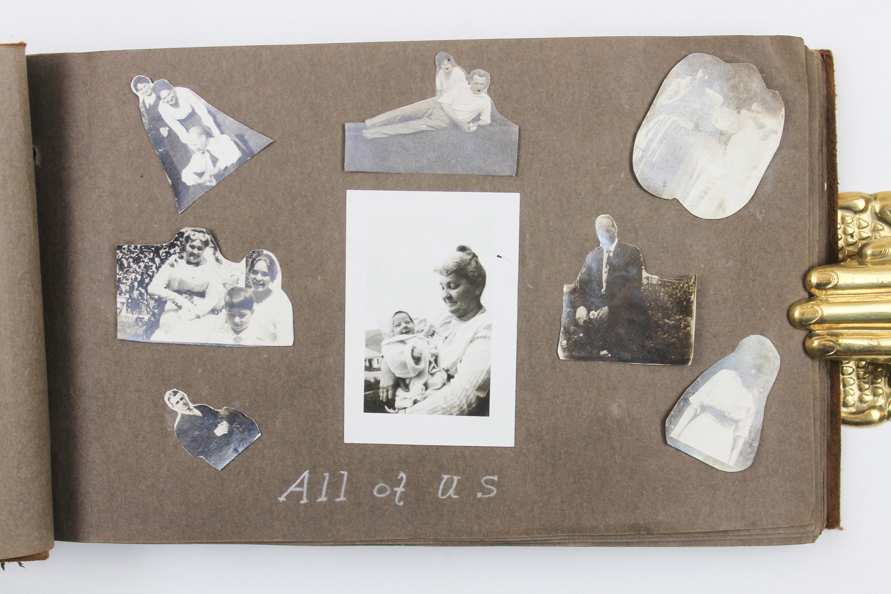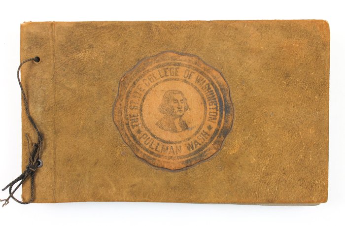 Oblong Quarto album ca. 15,3x26 cm (6 x 10 ¼ in). 41 paper album leaves (9 blank). With 199 original gelatin silver photographs (including 12 loose) from ca. 12,5x17,4 cm (5 x 7 in) to 4x2,5 cm (1 ½ x 1 in); three newspaper clippings (including two identical); a hat-shaped program from the Freshman All-College Dance in 1921; a fraternity Christmas greeting for 1922; a Domino Tablet Sugar wrapper; three pages of handwritten wishes from the compiler’s friends at the College; and one stamped invitation card addressed to “Dr. W. H. Lursen” in 1955. Most photos dated or with captions either on the mounts or verso. Period brown suede album fastened with a string; a circular insignia of the State College of Washington on the front cover. Several photos missing, light age-toning, newspaper clipping with tears at the edges, but otherwise a very good album with strong photos.