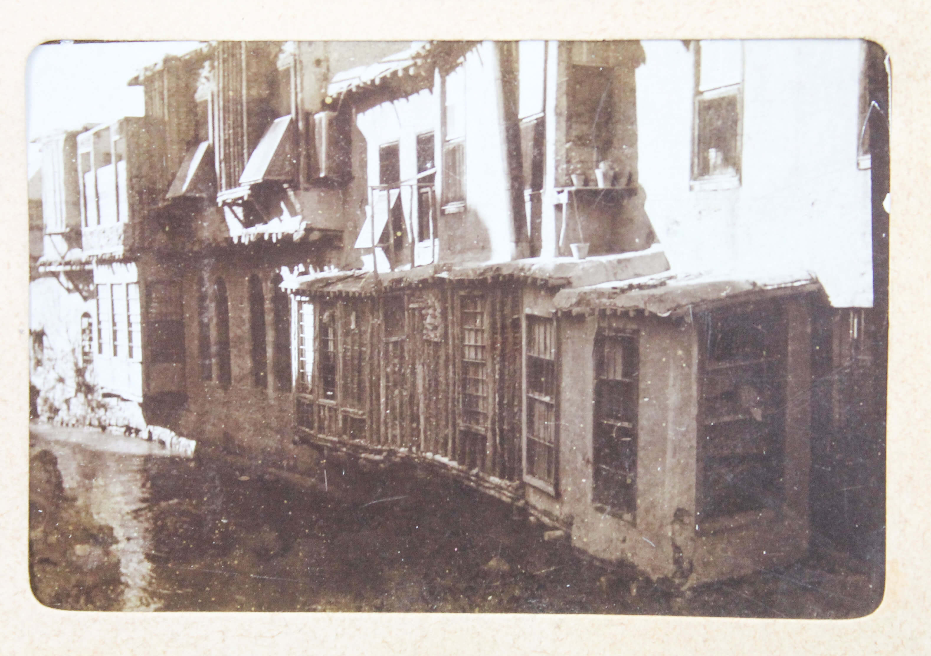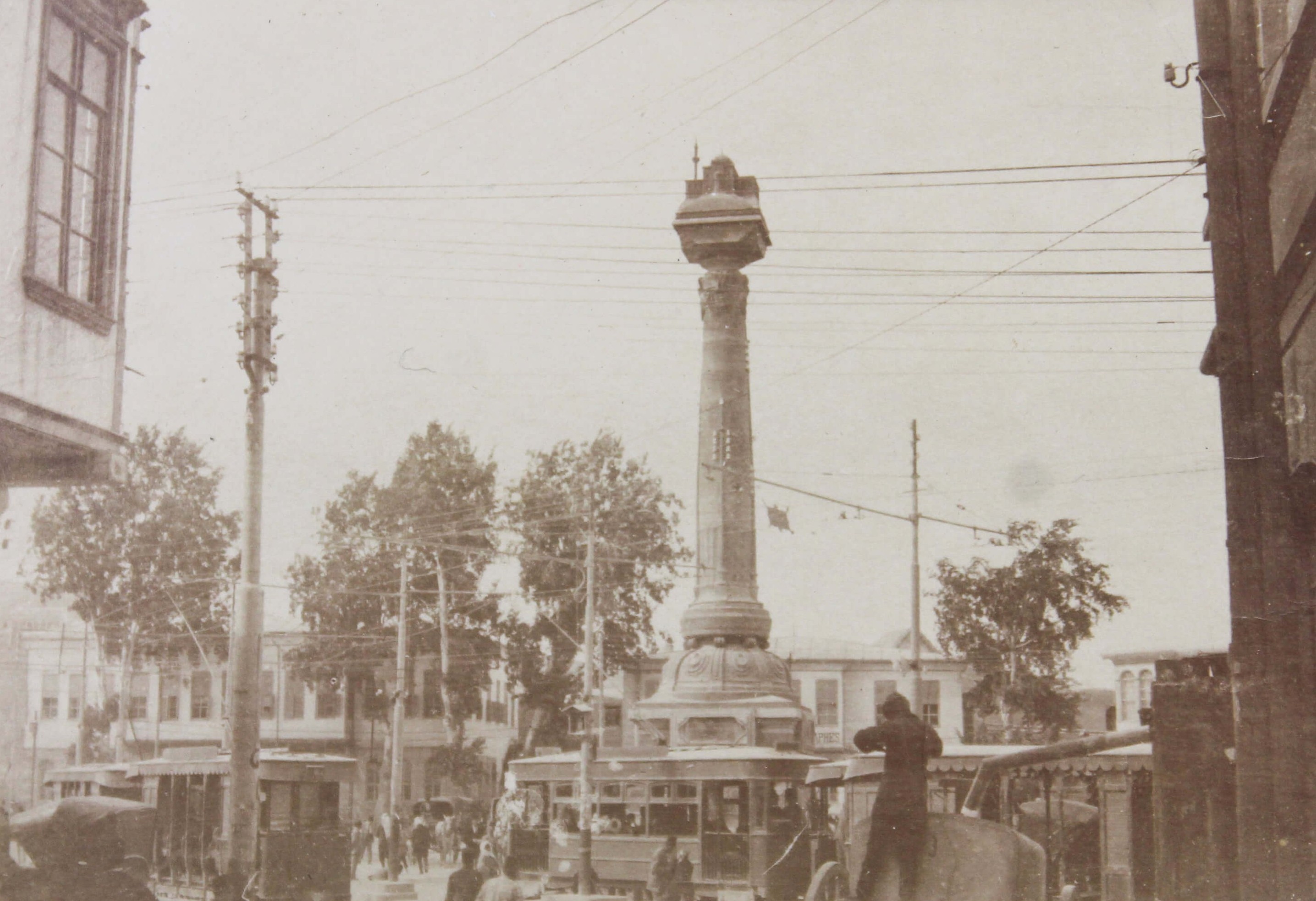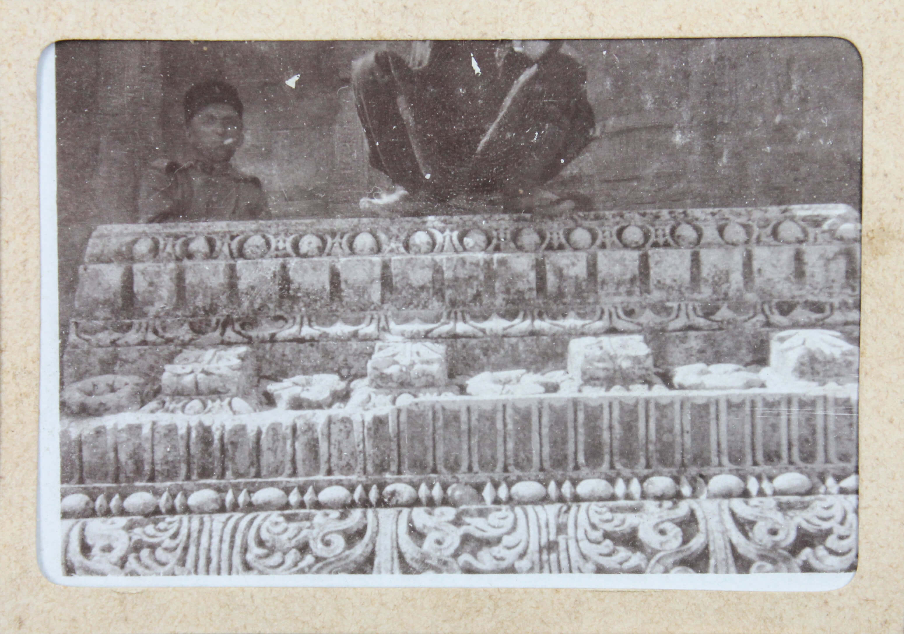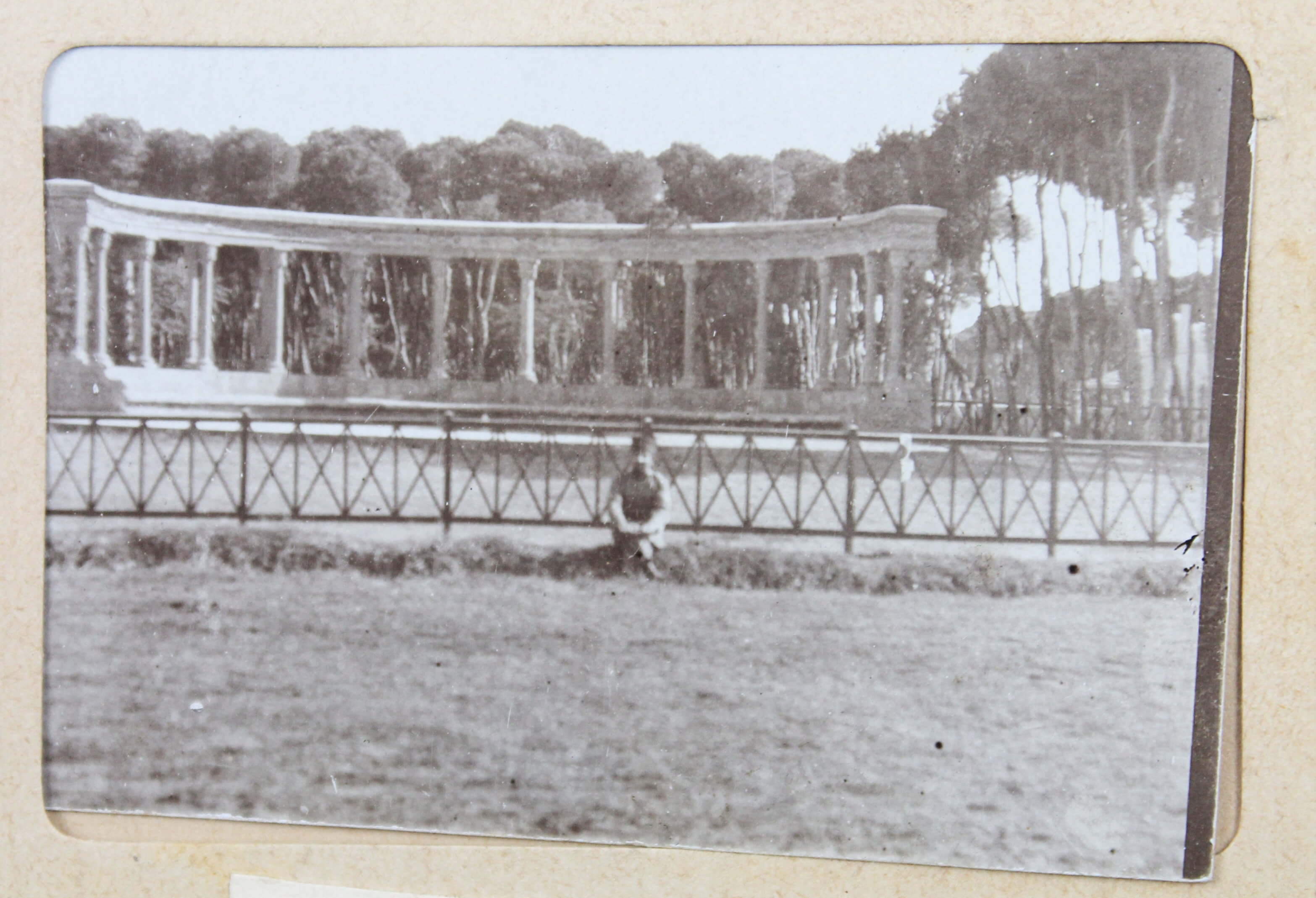 The album features eighty-four rare amateur photographs of the western Arab World, with most images showing early twentieth-century Lebanon. About twenty photos of Baalbek portray local landmarks (Temple of Jupiter, Hajar al-Hibla, Roman Ruins, Roman Temple of Bacchus, etc.), ethnographic views (with a clearly visible Lebanese flag waving atop a local dwelling), and lively shots of the compiler and his military comrades posing at ancient sites. Especially interesting is a candid urban scene showing locals in European costume and traditional attire standing on the platform or walking along the tracks at Baalbek Railway Station, with French police maintaining order. The Lebanon series concludes with a photograph of the iconic Pine Residence in Beirut and well-executed views of the city’s waterfront.