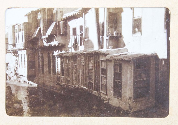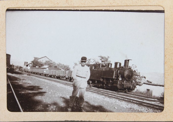 Oblong Quarto album (ca. 19x26,2 cm). 12 card stock leaves. With 84 mounted original gelatin silver photographs ca. 5,7x8 cm (2 ¼ x 3 in). No captions. Period brown cardboard album fastened with a string. Binding worn at the edges, tear of the spine, photos age-toned, one photo with minor stains, but otherwise a very good album with strong, interesting photos.