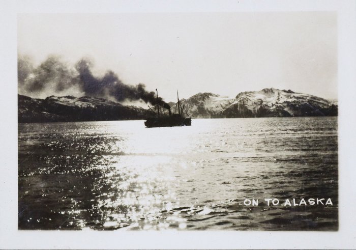 Overall, historically interesting collection of original gelatin silver photographs and printed postcards mostly taken and collected during a voyage from Seattle to Alaska, in the summer of 1929.