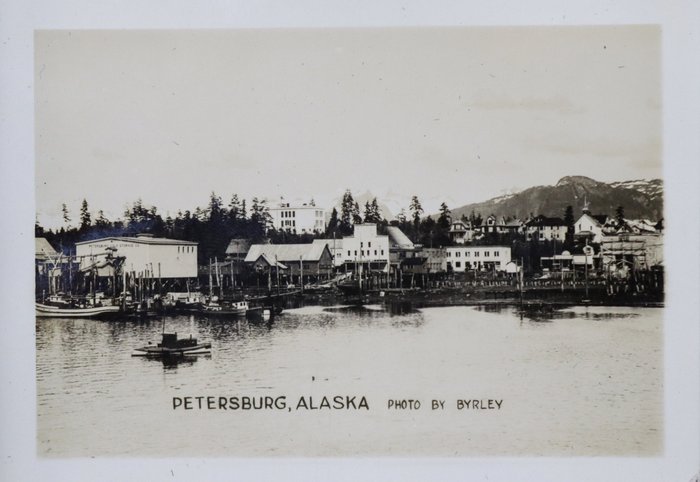 Historically interesting collection of original photographs and printed postcards taken and collected by Jay C. Morse (ca. 1873–1954), a family member of telegraph inventor Samuel Morse (ca. 1791-1872, mostly during a voyage from Seattle to Alaska in the summer of 1929. Jay and his wife, Nellie W. Morse (ca. 1873), departed Seattle aboard the SS Queen on August 22 for a five-day journey, stopping at Ketchikan, Wrangell, Petersburg, Juneau, and Skagway.