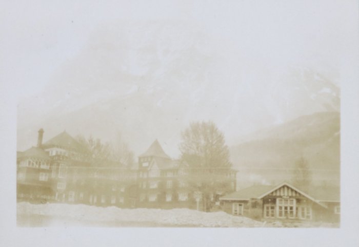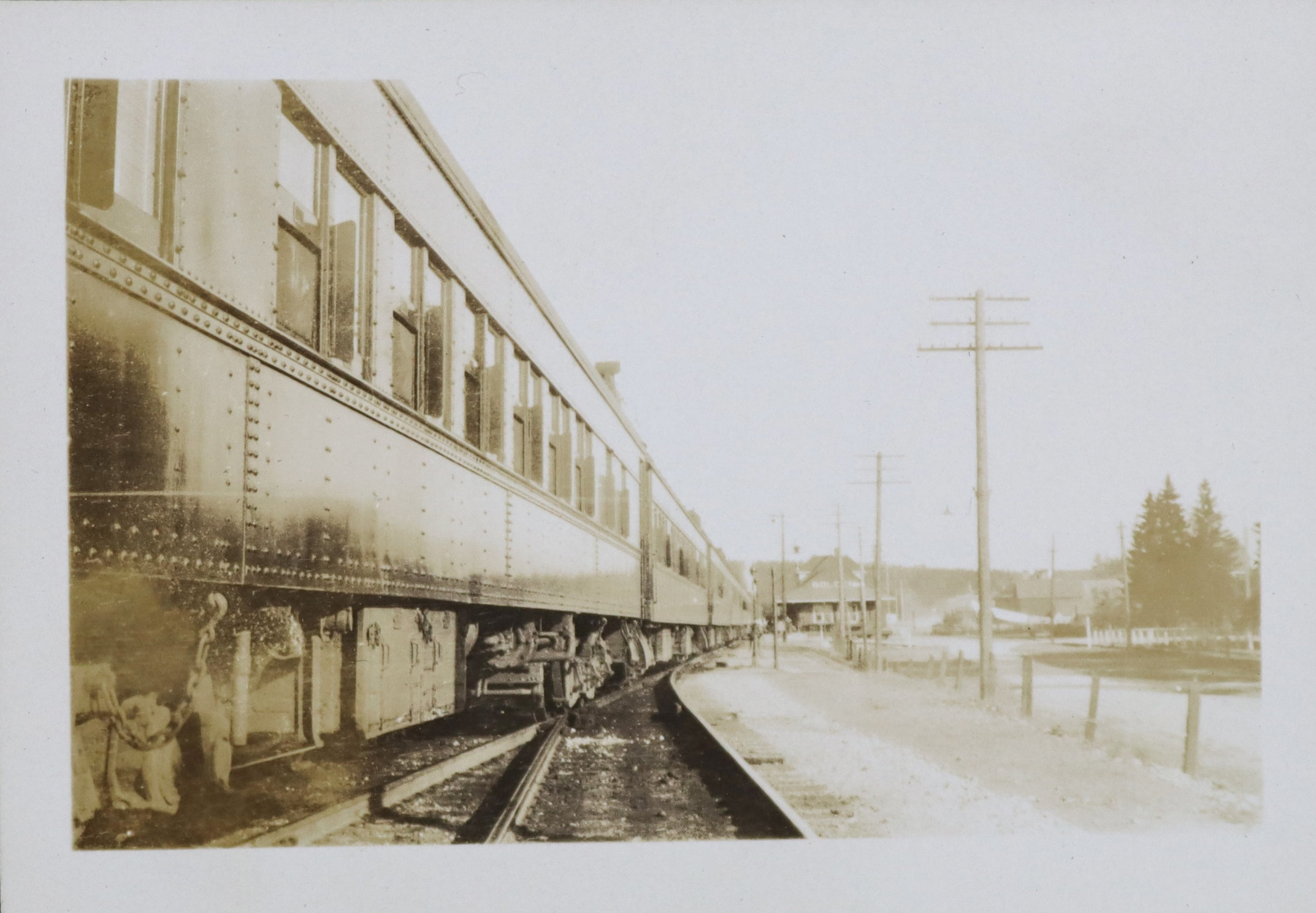 The album also includes about twenty original photographs apparently taken and compiled during another journey from Field, British Columbia, to Toronto, Ontario. Identified views include the Mount Stephen Hotel in Field, a train locomotive, the SS Canada of the Canada Steamship Lines, and Niagara Falls.