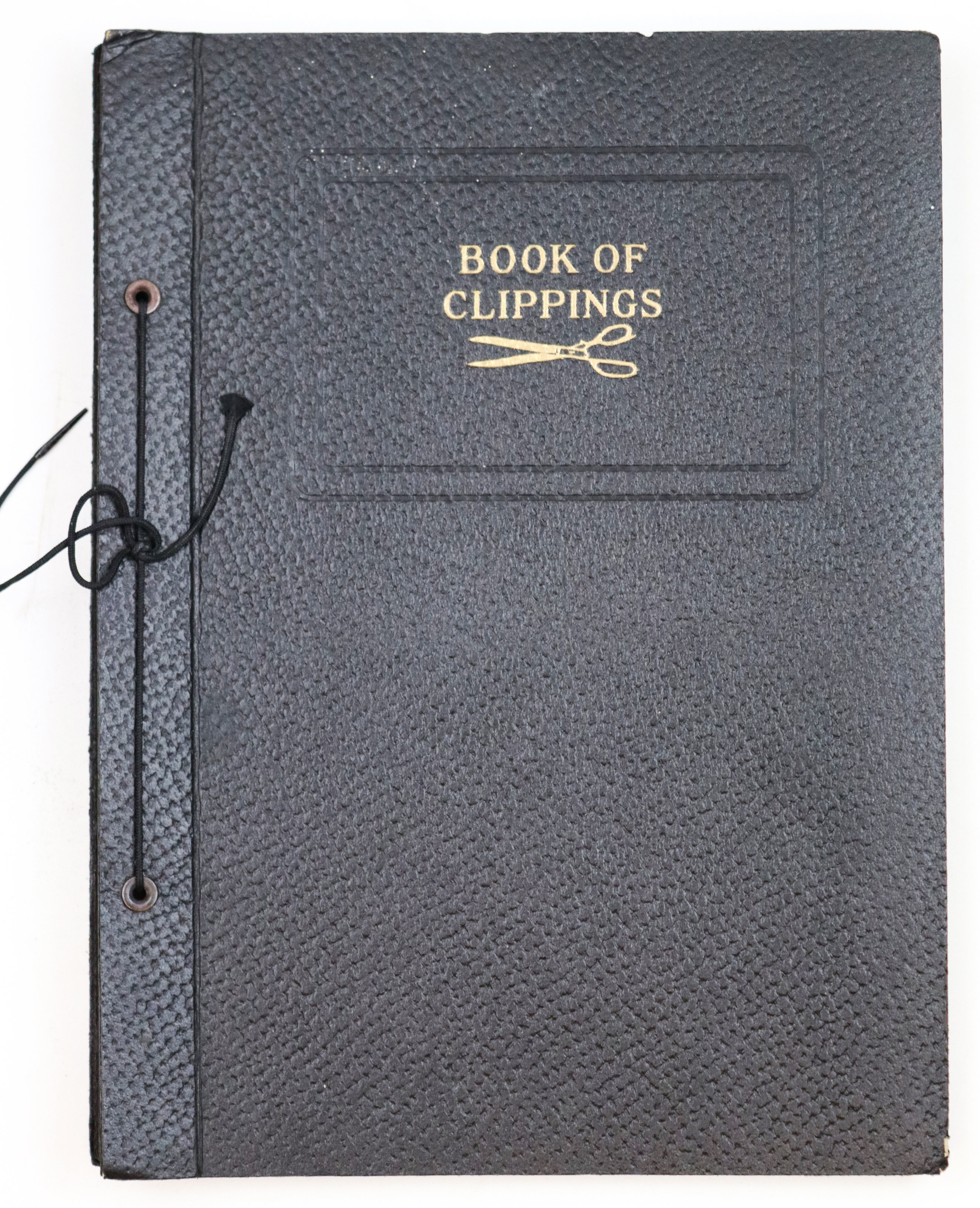 Folio album ca. 30,4x22,5 cm (12 x 8 ¾ in). 23 paper album leaves (six blank). With 71 original gelatin silver photographs (including six loose) from ca. 12,8x17,7 cm (5x7 in) to ca. 4,7x6,8 cm. Most photos with English captions on the mounts, in negatives, or on verso; with ten real photo postcards ca. 8,6x13,8 cm (3 ¼ x 5 ½ in), most by John E. Thwaites, photographer of Alaska; with ca. ten pieces of printed ephemera, including tickets and dinner saloon checks. Period black cloth album fastened with a string; gilt-lettered title “Book of Clippings” on the front cover. Edges worn, about ten photos partially detached, but otherwise a very good album with strong, interesting photos.