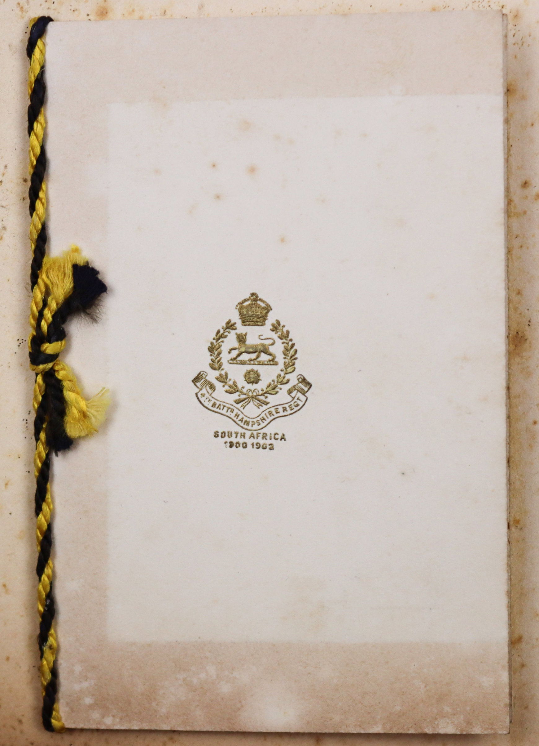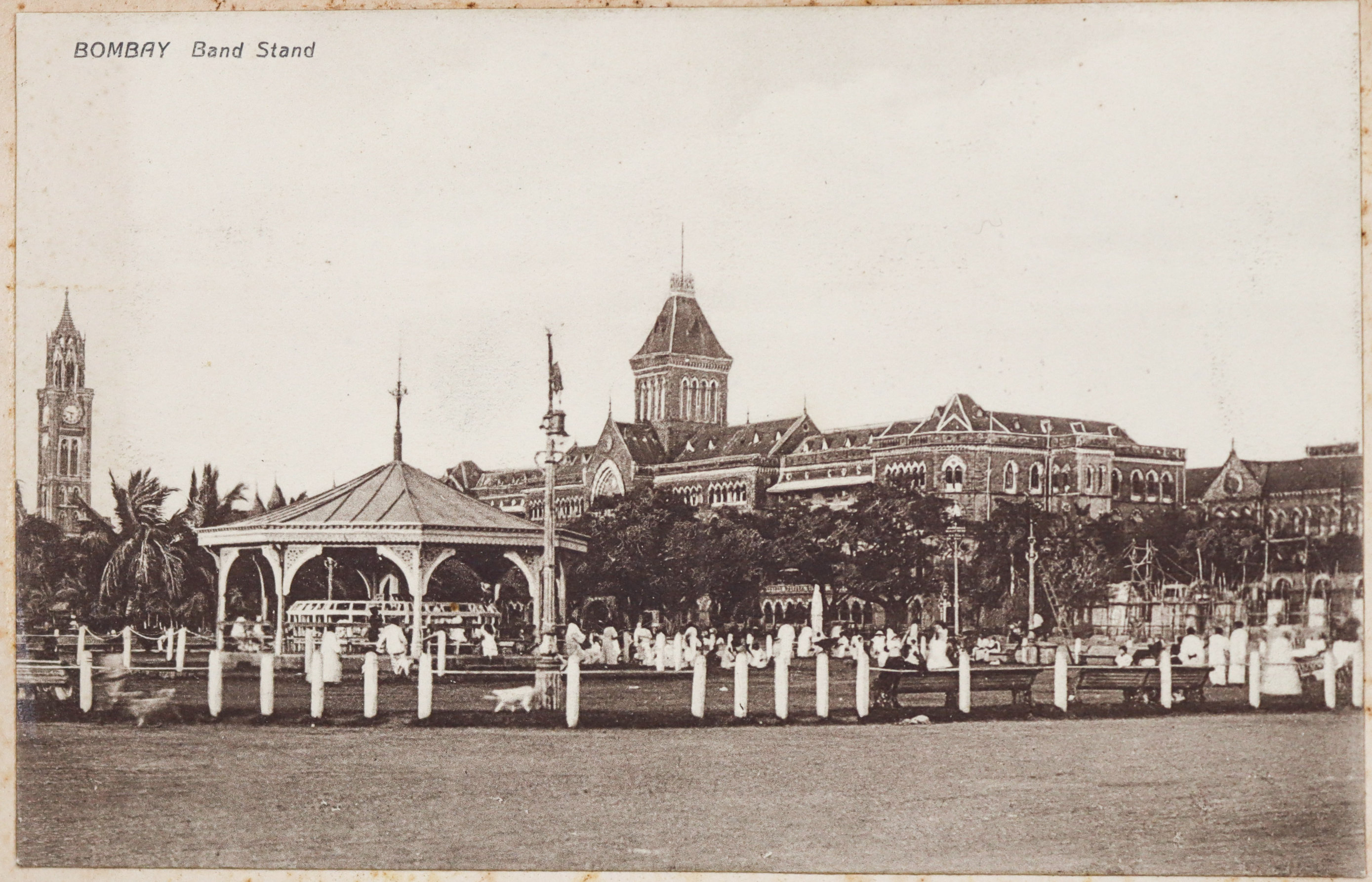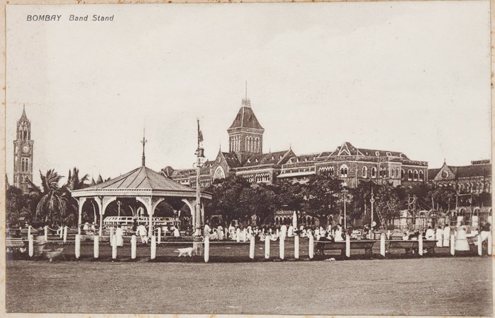The collection also features about ten printed postcards of Mumbai and the Suez Canal; a WWI Christmas postcard; a New Year card from the 4th Battalion Hampshire Regiment signed by "Herb;" and a vintage "pull-out" souvenir postcard shaped like a bear holding an "A ‘Bear’ Idea of Bombay" sign; the flap reveals twelve small black-and-white views, including Queens Road, Null Bazar Street, Apollo Bunder, and Victoria Gardens.
