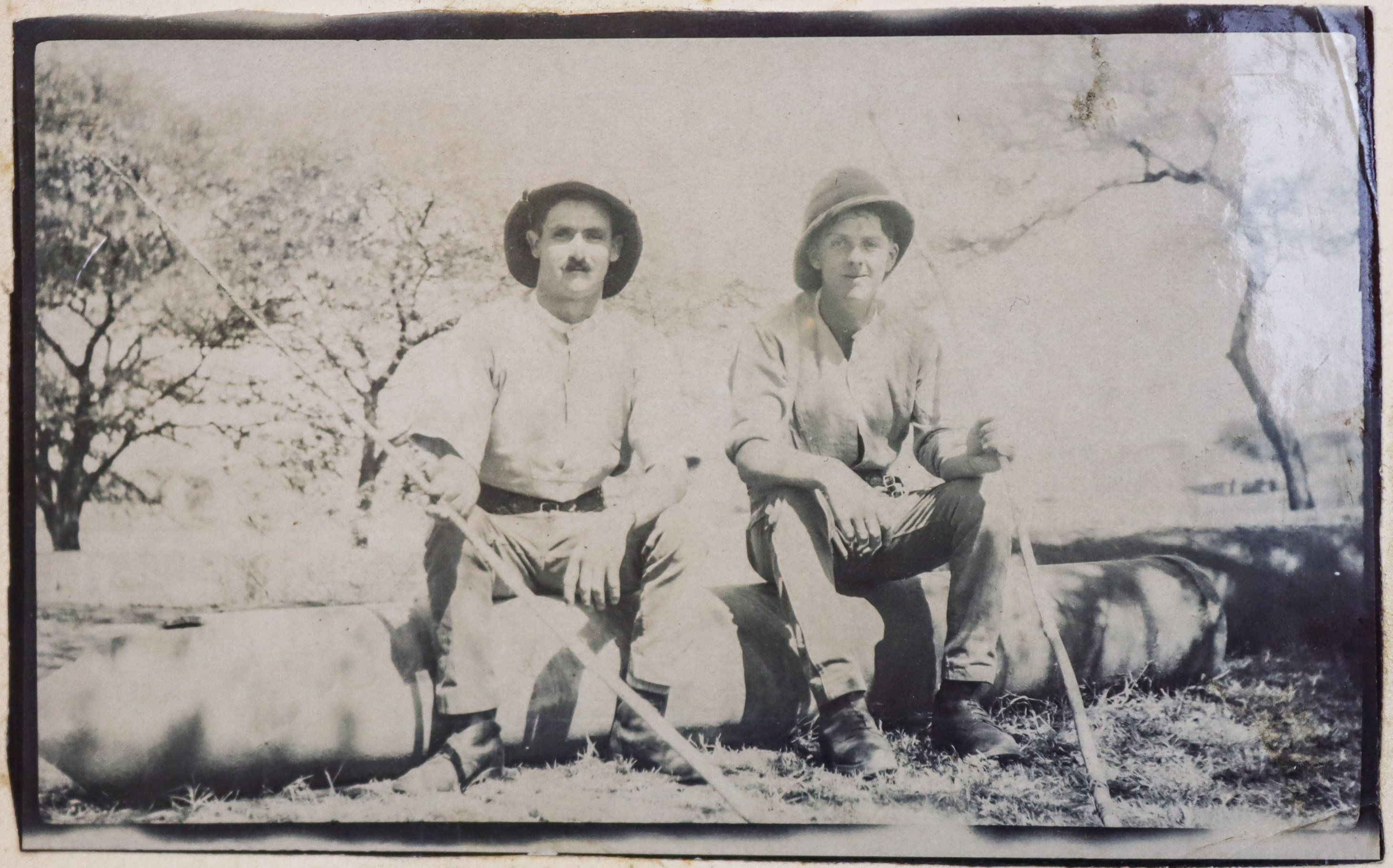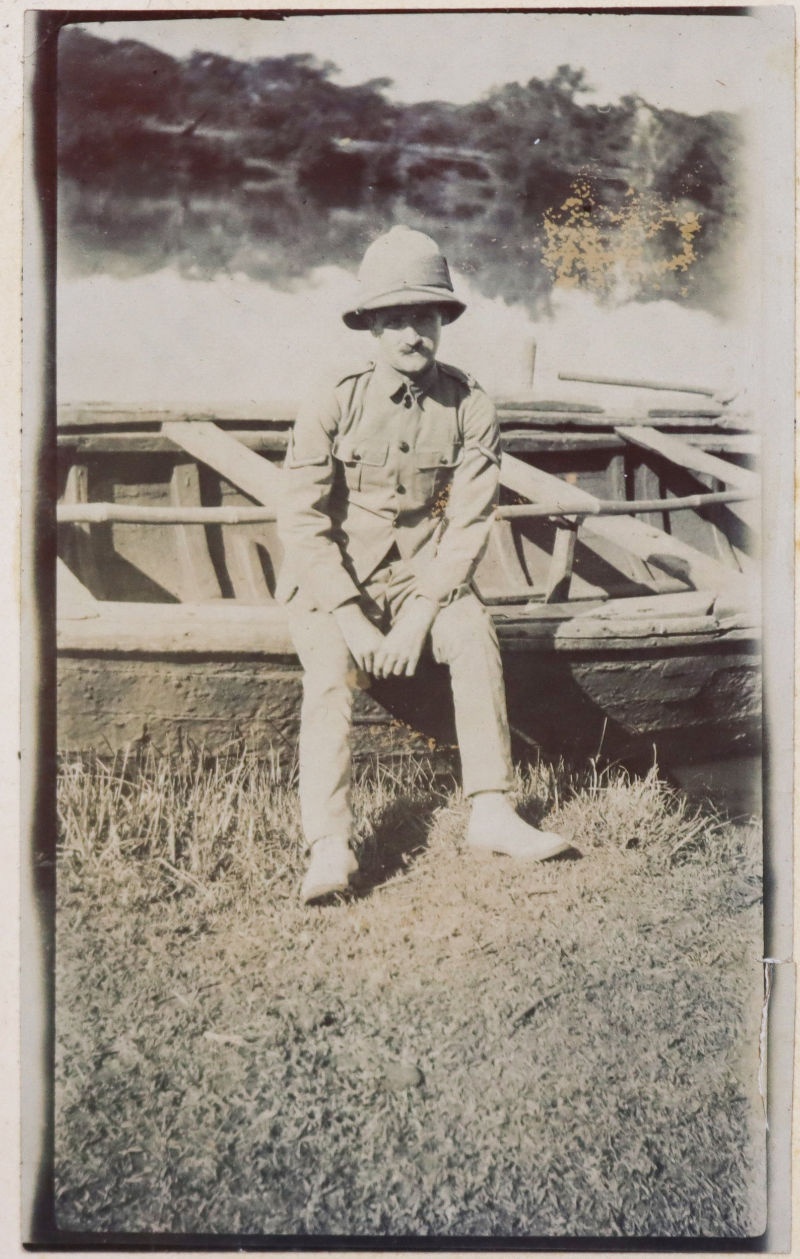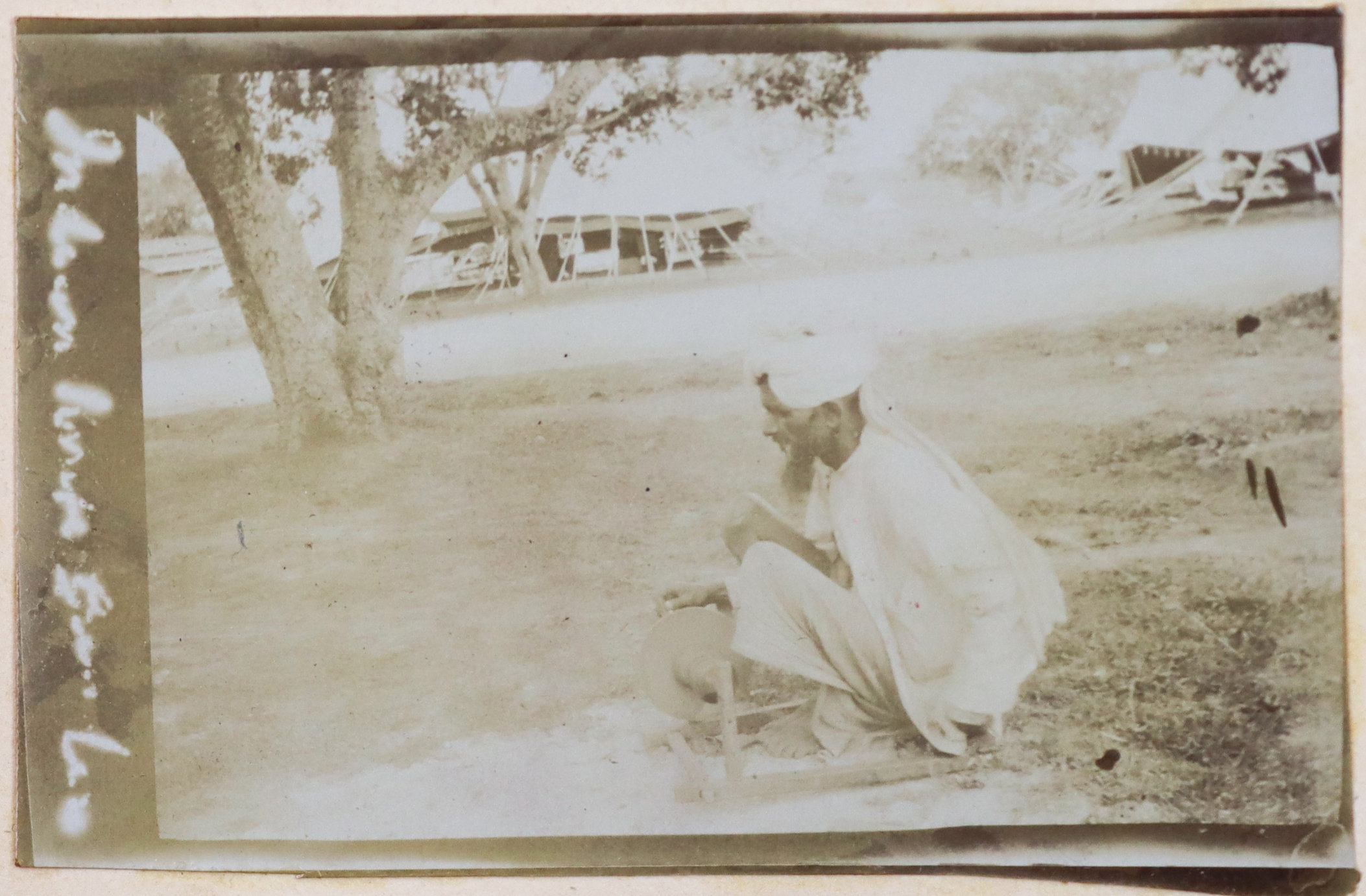 About twenty-five photographs of India were taken and collected by the compiler prior to the 1/4th Hampshire Regiment’s deployment to Mesopotamia. Interesting images include group portraits of British and Indian soldiers, Parsi haymakers in traditional attire clustered near barracks, and soldiers landing mules in Parsik Hill. Other photographs primarily depict the compiler and his companions, local children, the YMCA quarters in Deolali, nature views, and scenes of oxen drawing water from a well.