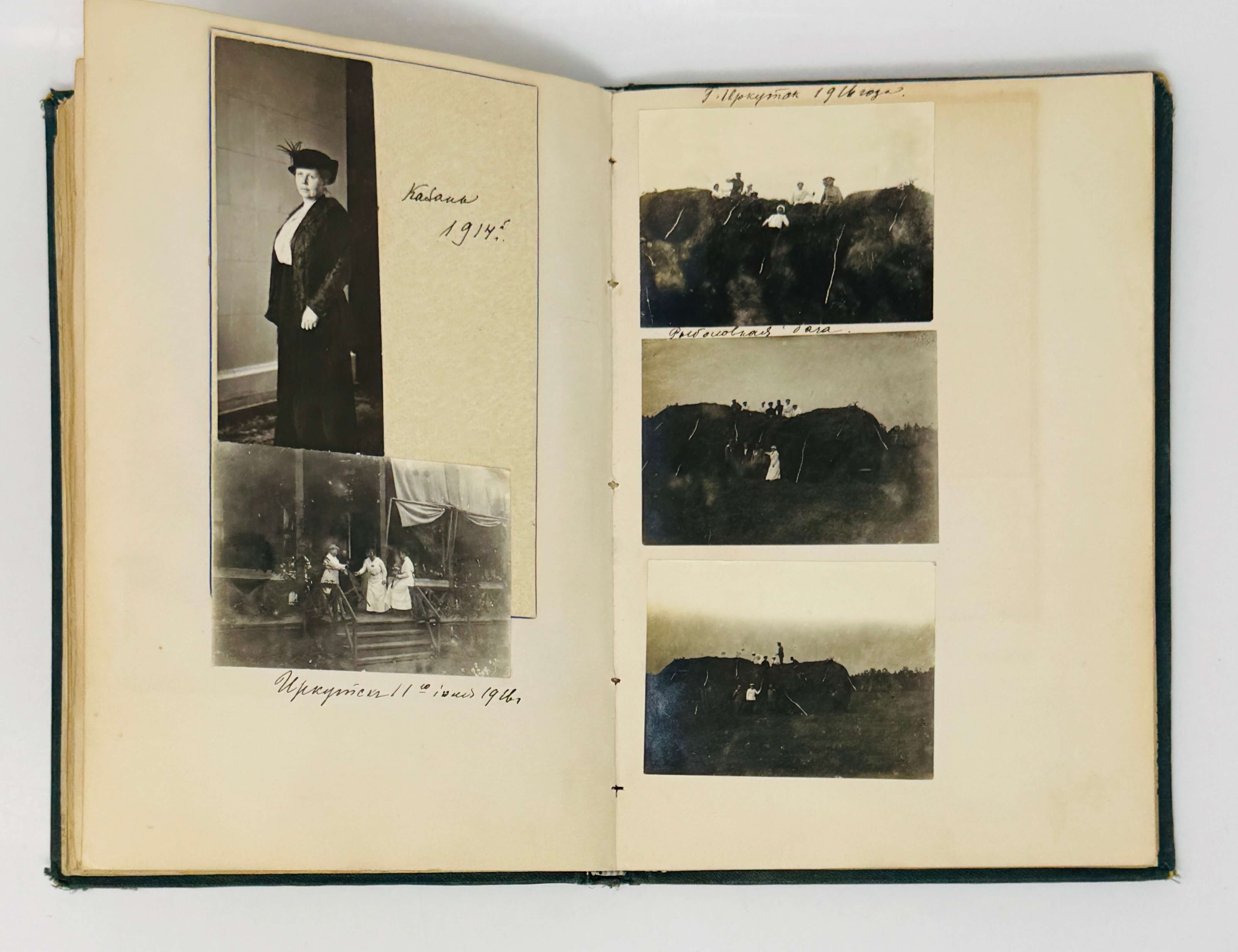 The second album is a keepsake album, kept by Sophia Sherbakova (София Щербакова). The album starts in Kazakhstan, then we see the couple vacating in Crimea (Zeleny Mys) and visiting Niagara Falls and New York. The second half of the album is dedicated to their life in China and Siberia: it starts with the street panorama in Badong, an image of two Russian officers next to a buddhist temple, group of four Russians on the horse-changing station, the image of the house with a caption ‘our flat’, a group of Cossacks next to an entrance into a town, street and nature views. The final section of the album shows Sophia in Irkutsk in 1914-1916, with one photo captured ‘Kazan’.