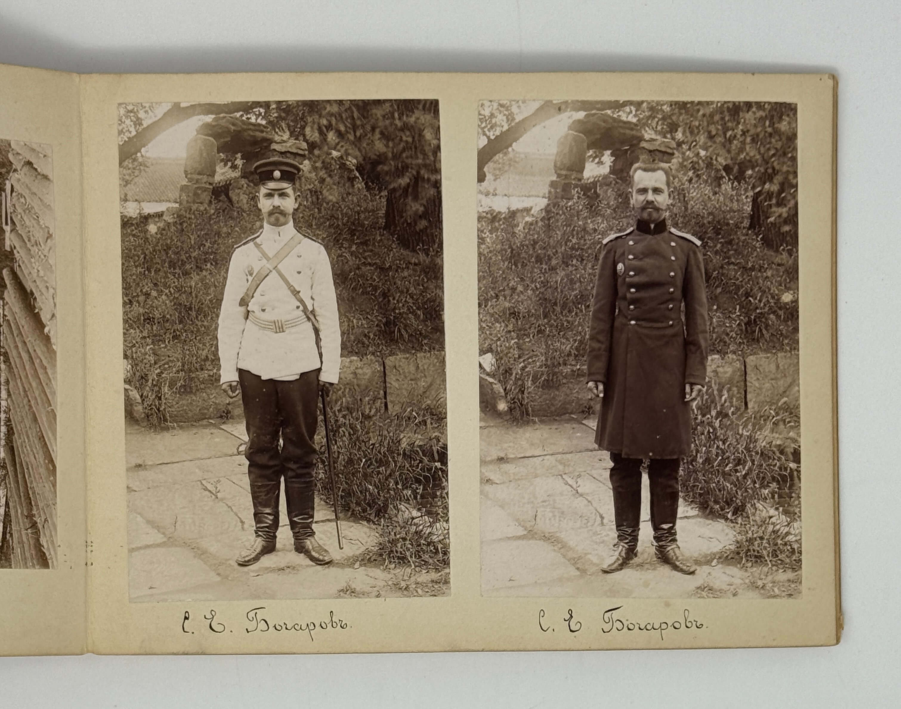 The albums are coming from the families of the Russian officers, who served in China, Central Asia and the Far East in the last two decades of the existence of the Russian Empire. The album share provenance and have belonged together in the collection we acquired them from, although it is unclear if the people on the photos are related.