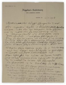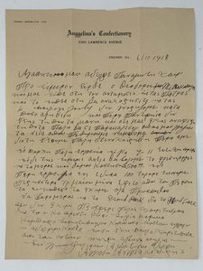 Historically interesting original manuscript letter from a Greek confectionery shop owner in Chicago, sharing his business problems with his brother, Panagiotis, in Patra, Greece.