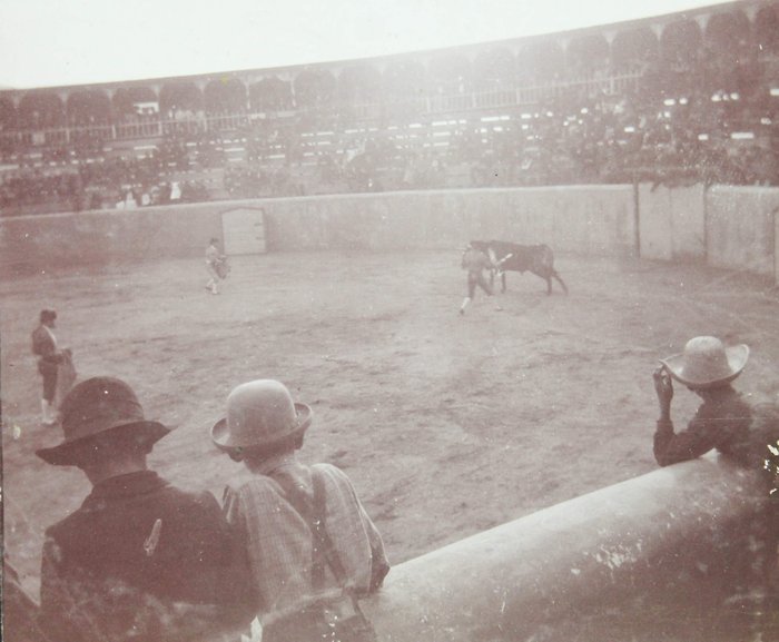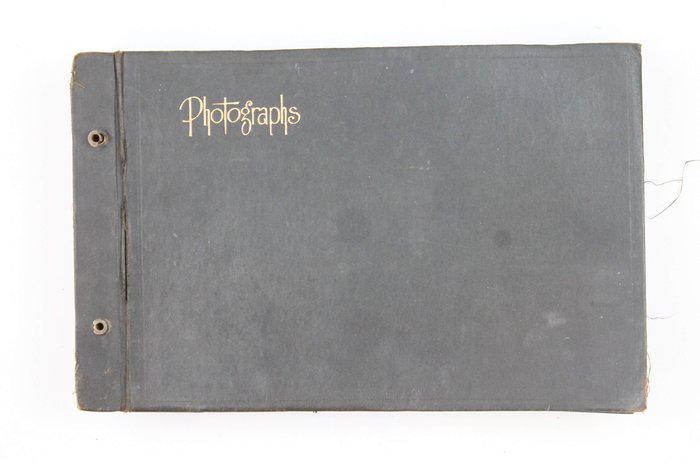 Oblong Quarto album (ca. 18,3x28,4 cm). 48 paper album leaves. With 314 original gelatin silver photographs (including six loosely inserted), from ca. 12x9,5 cm (4 ¾ x 3 ¾ in) to ca. 2,3x2,5 cm (1x1 in). Several photos with English captions on the mounts or on the verso; one photo dated and stamped “Hyatt’s 417 N. Broadway St. Louis” on the verso. Period dark brown cloth album with the gilt-lettered generic title “Photographs” on the front cover. Edges worn, several photos fully or partially detached, one leaf severed into two pieces, age-toned, but otherwise a very good album with strong, interesting photos.