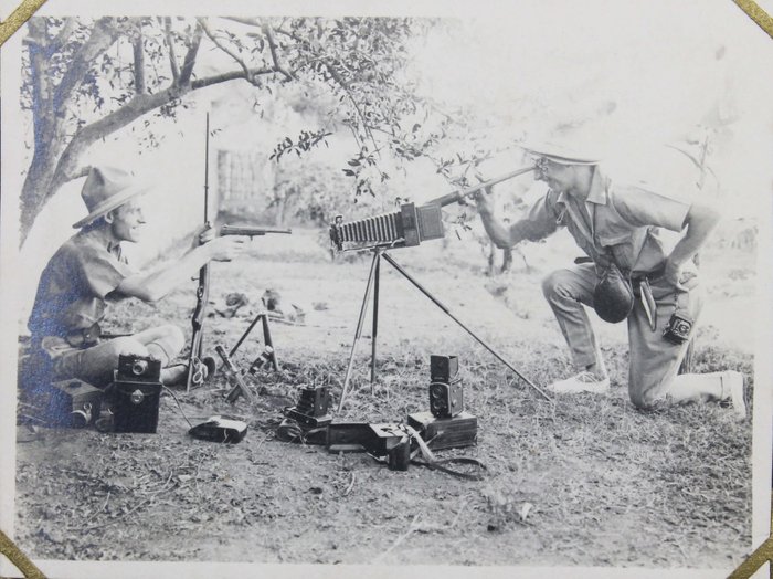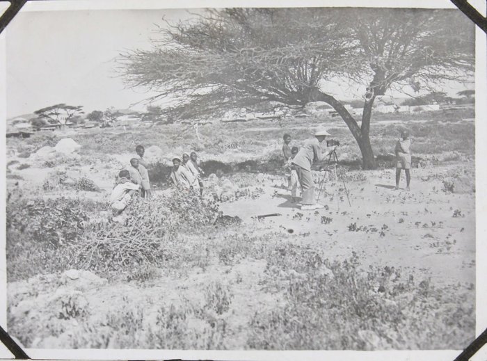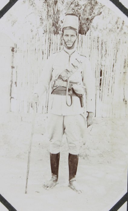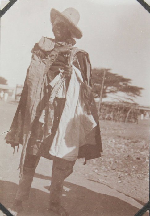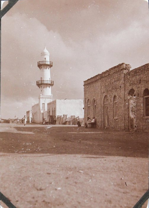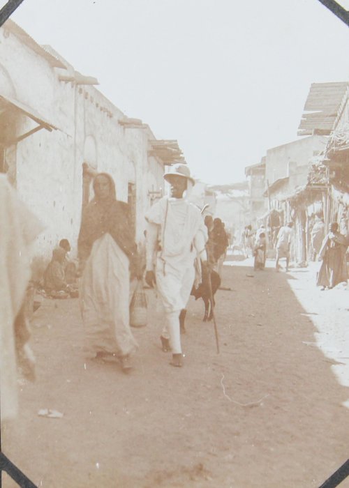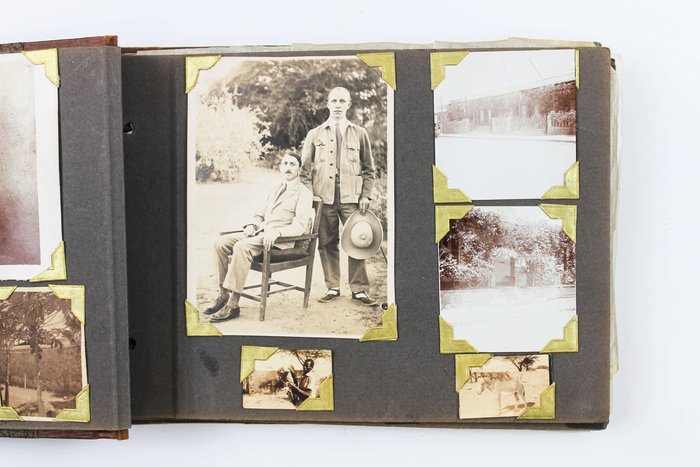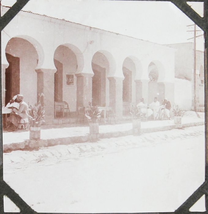 About thirty photographs document the compiler’s stay at the port of Djibouti, then part of the French Somaliland. The images feature early views of the Governor’s Palace, the Hamoudi Mosque, Hotel d’Europe, the Al Sada Mosque, “Grands Comptoirs Francais” on the Abussinie St. and other notable sites. The rest of the lively vernacular photographs mostly depict local people boarding a train, marching with firearms, riding horse- and donkey-drawn carts, posing in military uniforms, and engaging in diverse daily activities. There are also two interesting photos of the compiler and his colleague with early photographic equipment, capturing each other and smiling for the camera.
