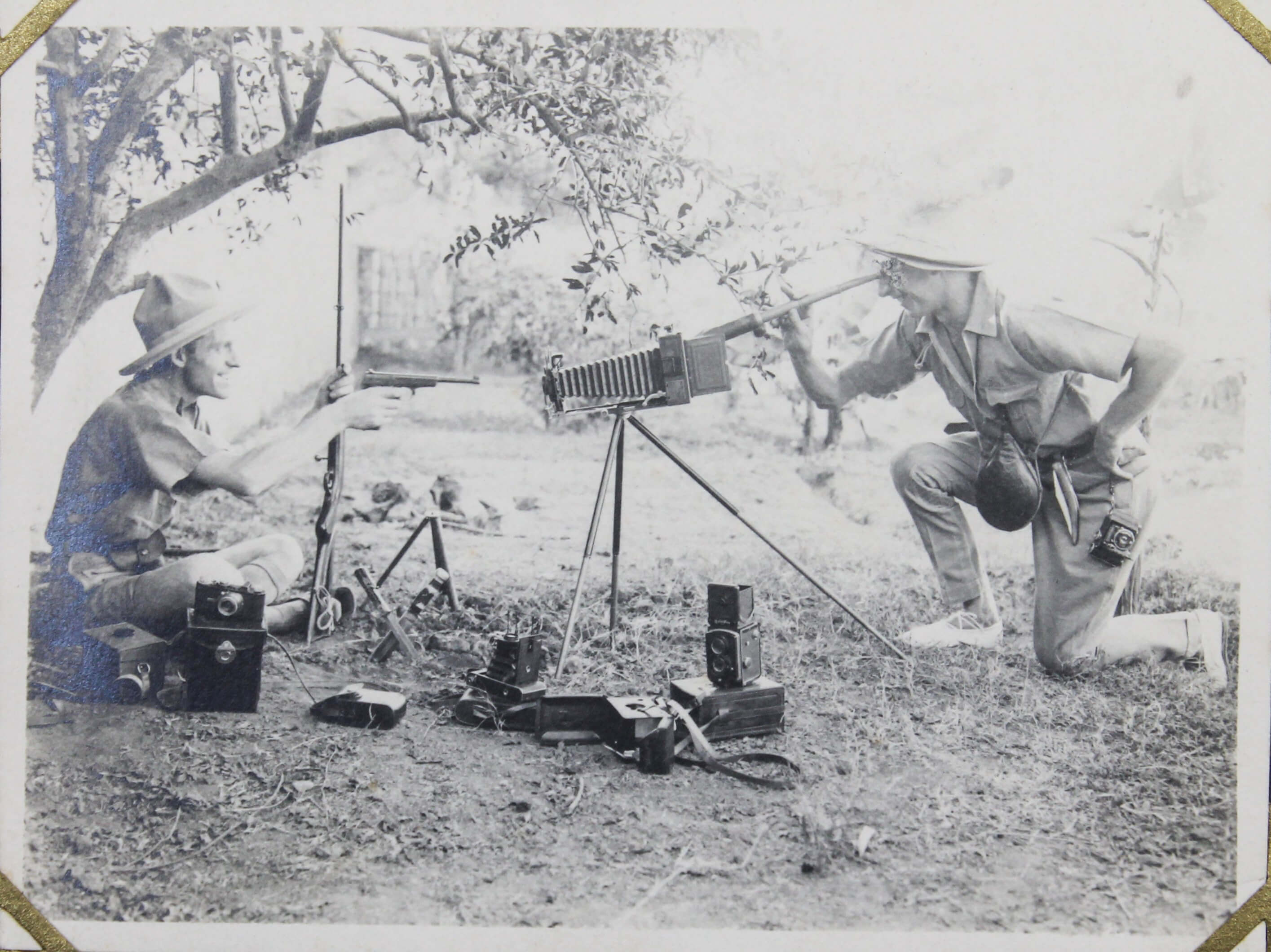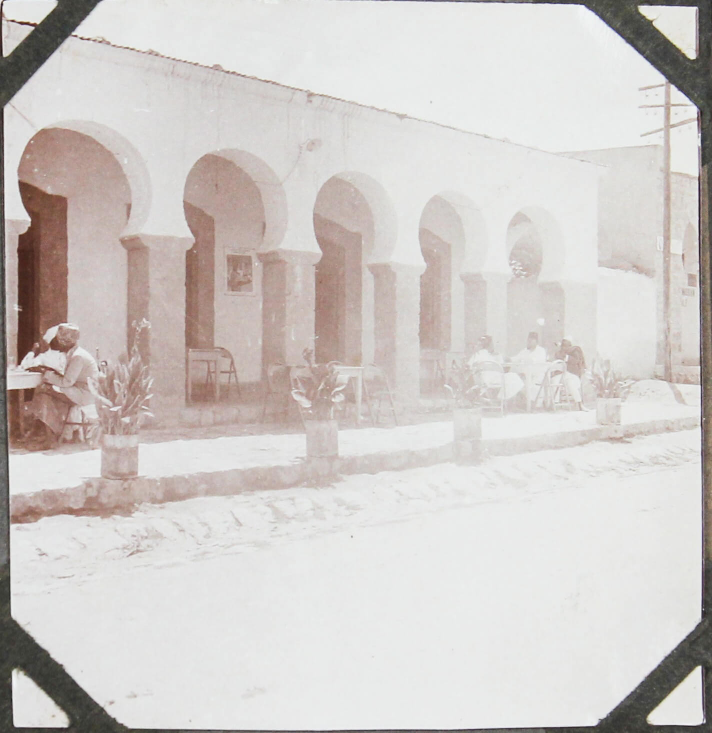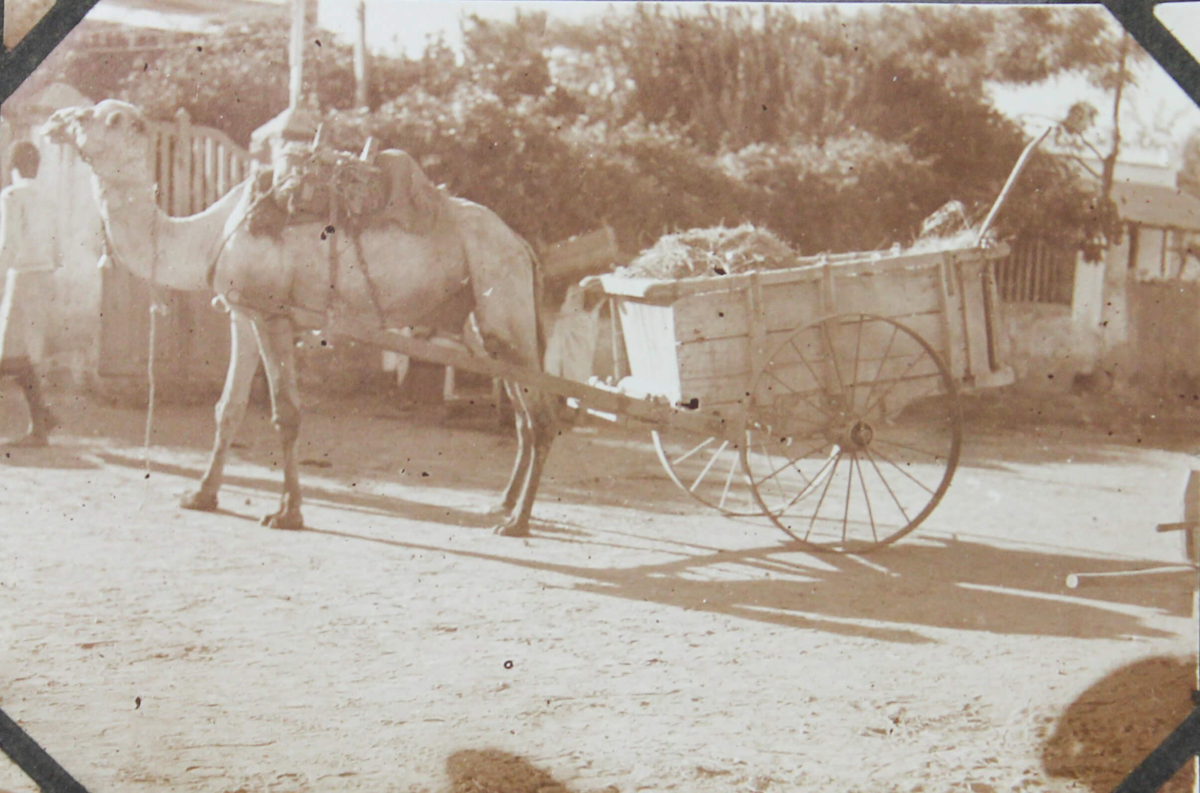 About thirty photographs document the compiler’s stay at the port of Djibouti, then part of the French Somaliland. The images feature early views of the Governor’s Palace, the Hamoudi Mosque, Hotel d’Europe, the Al Sada Mosque, “Grands Comptoirs Francais” on the Abussinie St. and other notable sites. The rest of the lively vernacular photographs mostly depict local people boarding a train, marching with firearms, riding horse- and donkey-drawn carts, posing in military uniforms, and engaging in diverse daily activities. There are also two interesting photos of the compiler and his colleague with early photographic equipment, capturing each other and smiling for the camera.