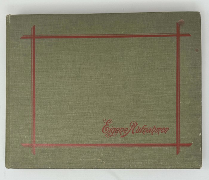 Oblong Folio album (ca. 27 x 33 cm or 10 ½ x 13 in). 24 card stock leaves. With 138 original gelatin silver photos, mostly ca. 8 x 12 cm (3 x 4 ¾ in). With 17 printed postcards, ca. 9x13 cm (3 ½ x 5 in); all mounted in windows. All postcards withprinted captions on the margins. Some of the photos are captioned in German on versos. Period green full cloth album; red gilt-tooled ornamental border and generic title in German on the front board. Binding slightly rubbed on extremities, several images previously removed from the album, a few photos mildy faded, but overall a very good album.