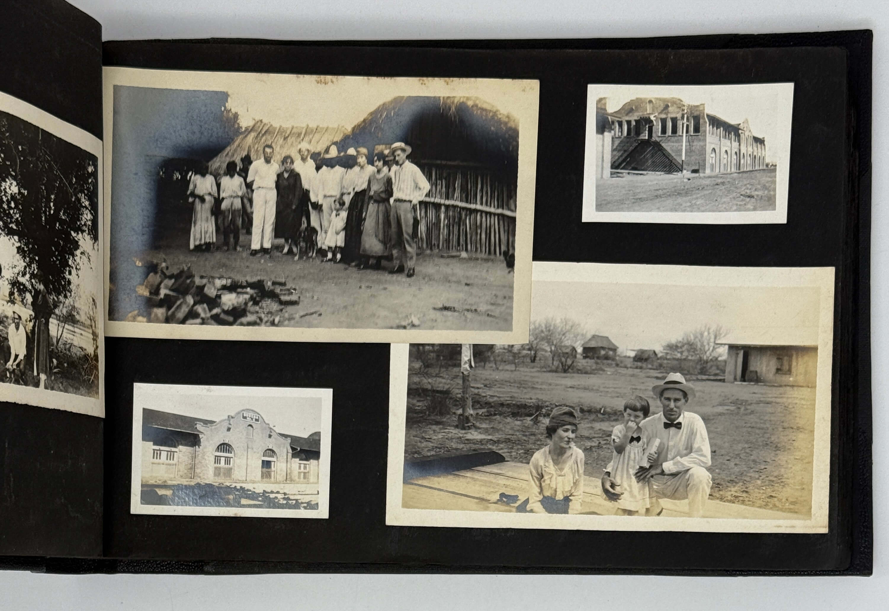 Oblong Quarto album (ca. 18,5x27 cm or 7 ¼ x 10 ½ in). 48 card stock leaves. With ca. 330 mounted original gelatin silver photos, from ca. 9x15 cm (3 ½ x 5 ¾ in) to ca. 4,5x6 cm (1 ¾ x 2 ¼ in). Fourteen photos are captioned in negative (most are also dated “1919” in negative). Period style black half sheep album with cloth boards; spine and corners with gilt-tooled borders. Several leaves at the rear with minor tears or losses of the upper outer corners, slightly affecting five or six photos, one family photo previously removed, a few photos mildly faded, but overall a very good album of interesting strong photos.