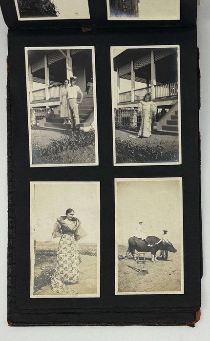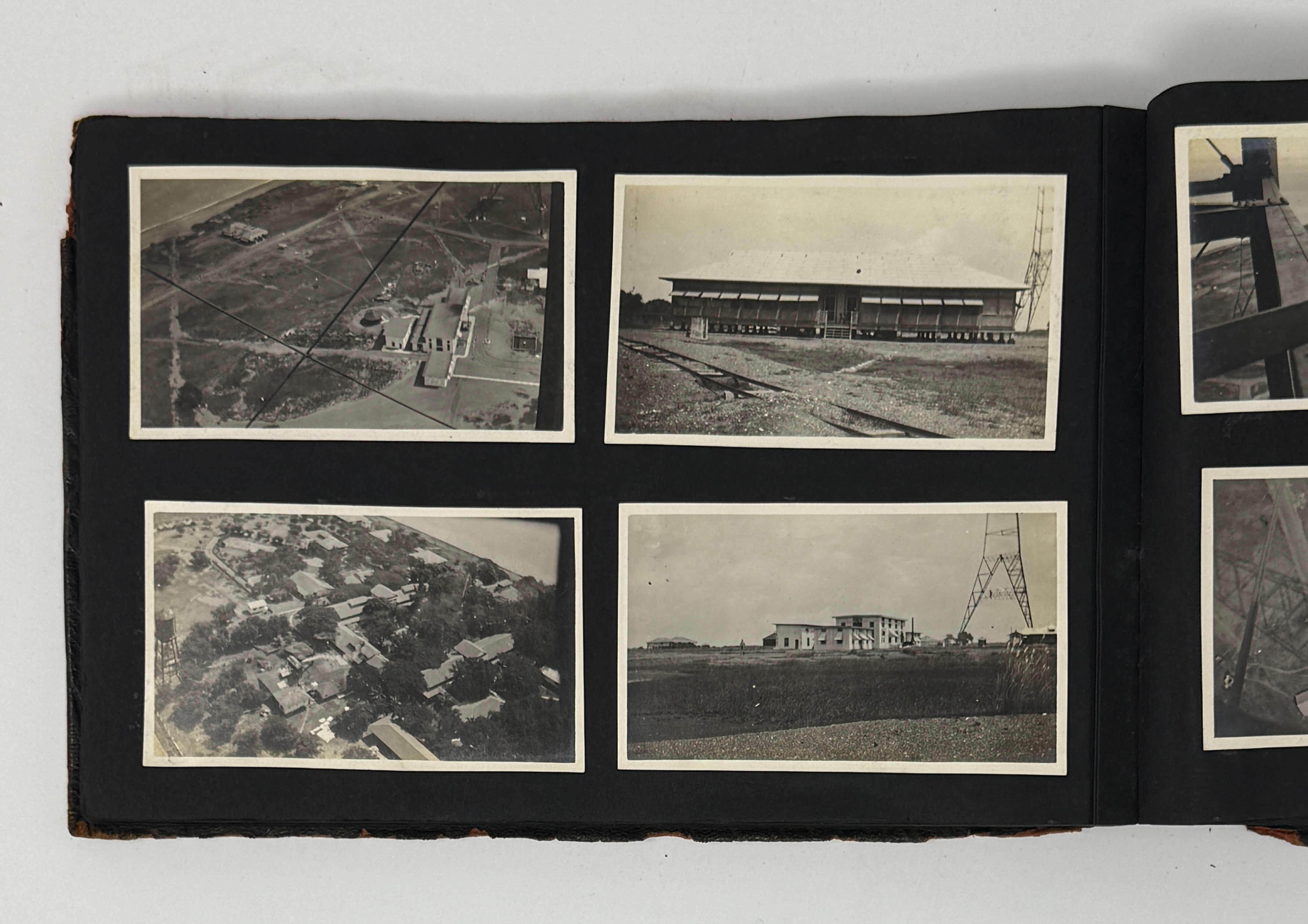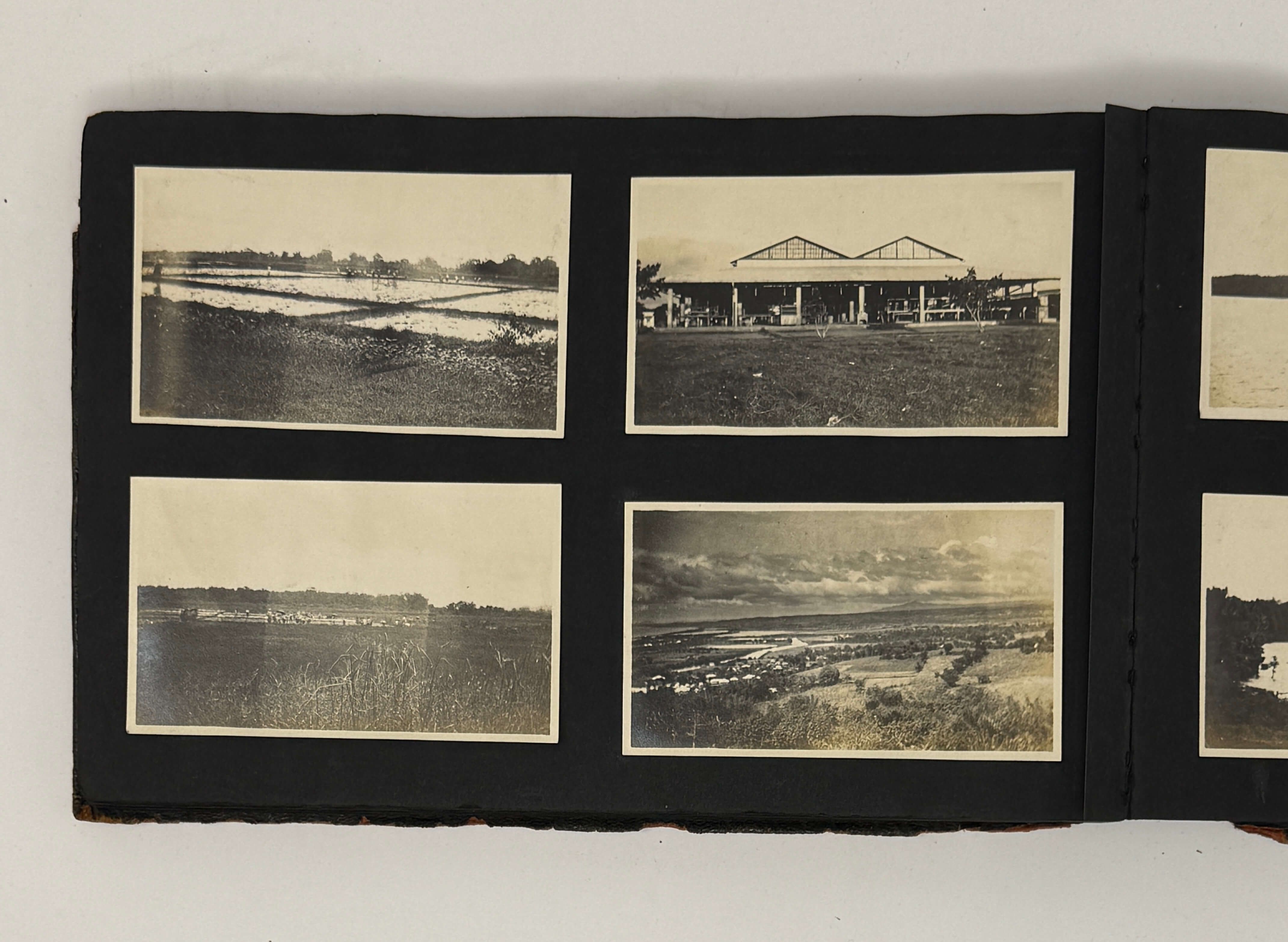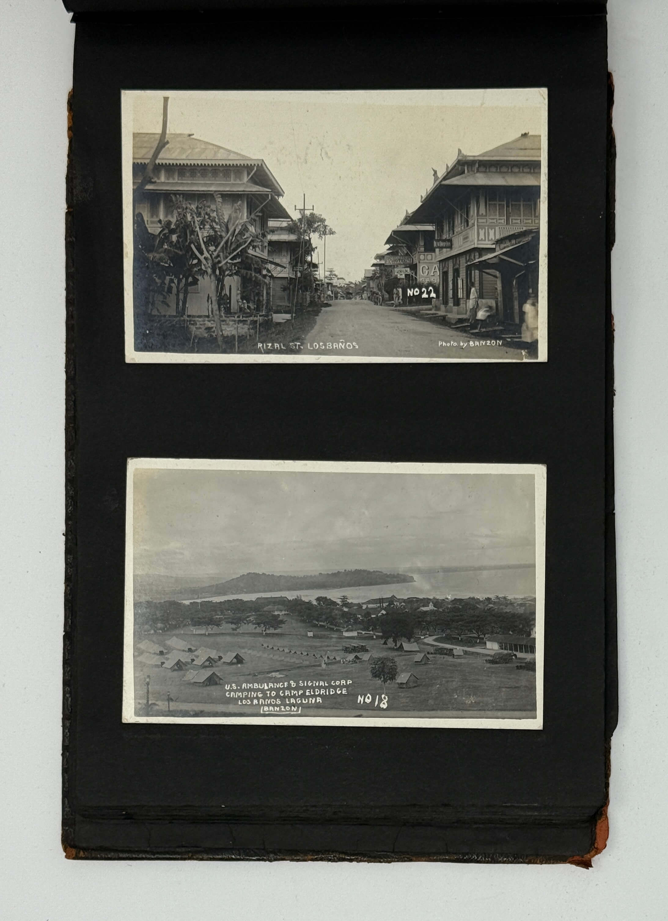 Historically important collection of original photographs illustrating the life of American Navy Officer Serving at Navy Radio Station in Washington and Philippines. He likely received his training at Tatoosh, before being sent to Philippines. Tatoosh station existed since late 1900s, being one of the first Island Naval Radio Stations on West Coast, following the first station on Mare Island, that has been established in 1904. The album is divided into three group of photos, the first one being from WA, the second - from Philippines, one of them dated in negative as of 1913, which suggests the arrival of the officer to Philippines around that time or in late 1910s. The same group of photos are taken in variety of places in the Philippines, but already include a number of photos of Las Baños, including the panorama of Los Baños Laguna with U.S. Ambulance & Signal Corp Camp Eldridge on it. The image of thecamp is a good verification for the dating of the photos of the first group: it has been photographed in a very early stage of its establishment, while later photos from before Japanese invasion show more buildings and more developed territory. This group of photos, which are larger include 17 images.