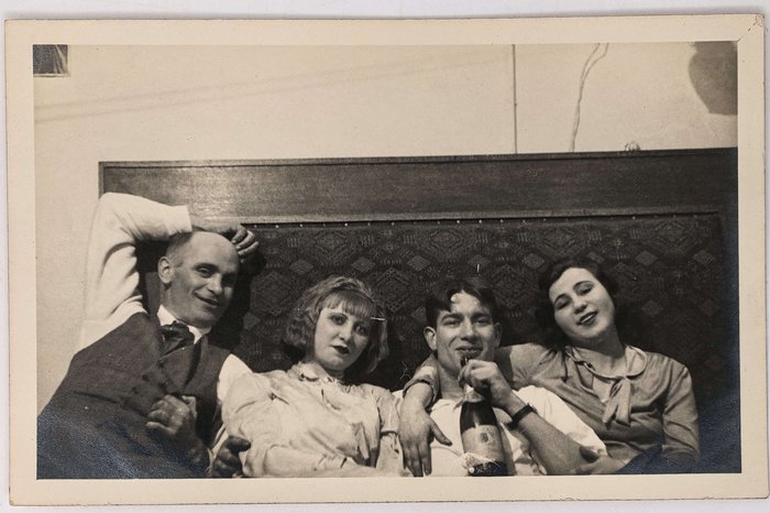 Quatro album (ca. 30x21 cm) with 36 stock leaves, photos are loosely inserted on the pages. Period full-cloth binding. Edges worn. Otherwise in very good condition.