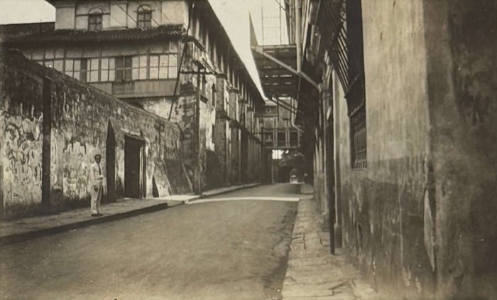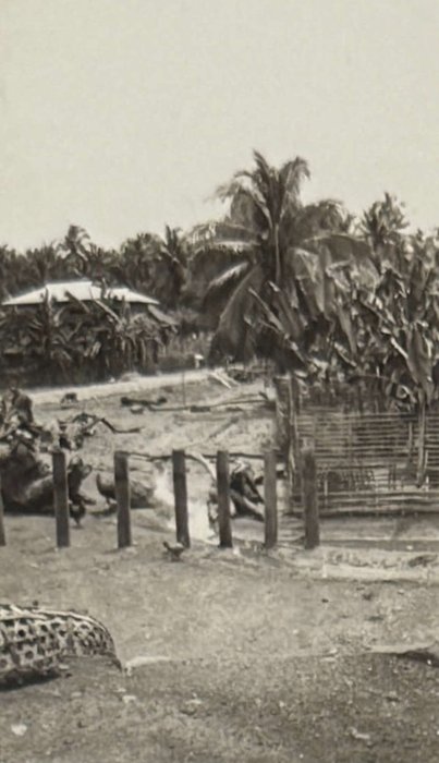 The photos of Manila show the “dock where or boats tied up,” “old tin church” (San Sebastian Basilica, built in 1891, the only steel building church in the Philippines), Manila Bay (featuring Manila Hotel and Government Buildings, naval ships and tankers in the harbour), Intramuros District (general views, “part of old wall,” San Agustin Church, “street inside old Manila”), five views of “old Spanish ruins” (actually, ruins of the Nuestra Senora de Gracia Church in modern-day Makati City, Metro Manila, burned during the initial skirmishes of the Philippine-American War in 1899), Manila cemetery (“burial crypts, Manila,” “vaults in cemetery, Manila,” “monument in Manila”), “street scenes in Philippines,” “stone quarry not far from Manila P.I.,” &c.
