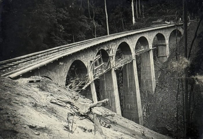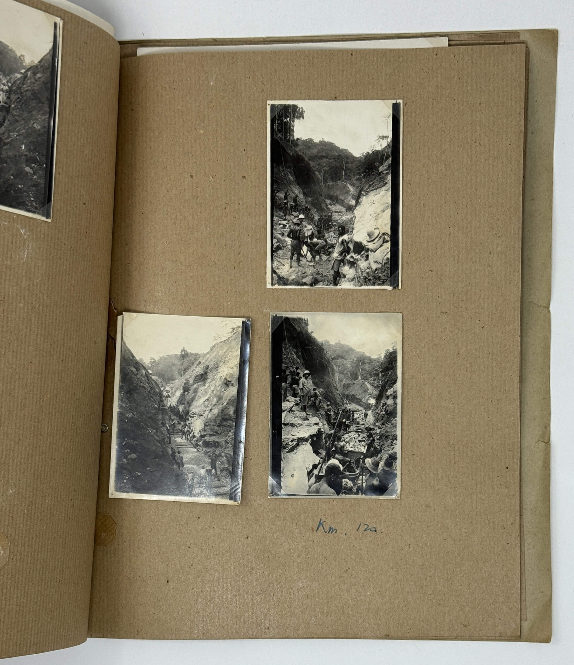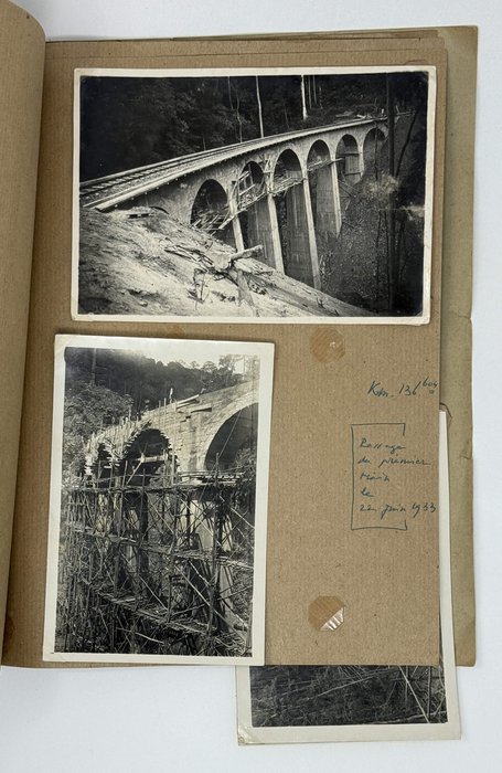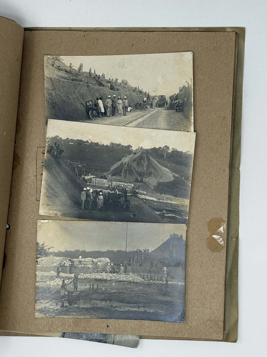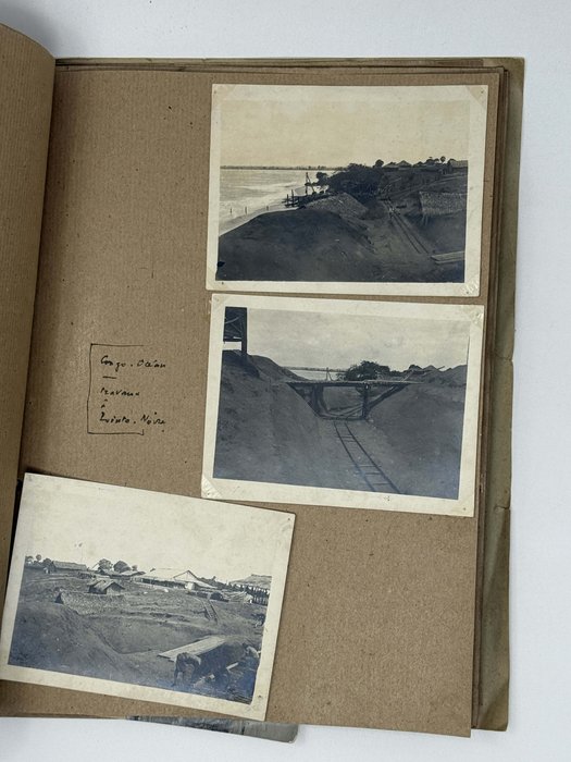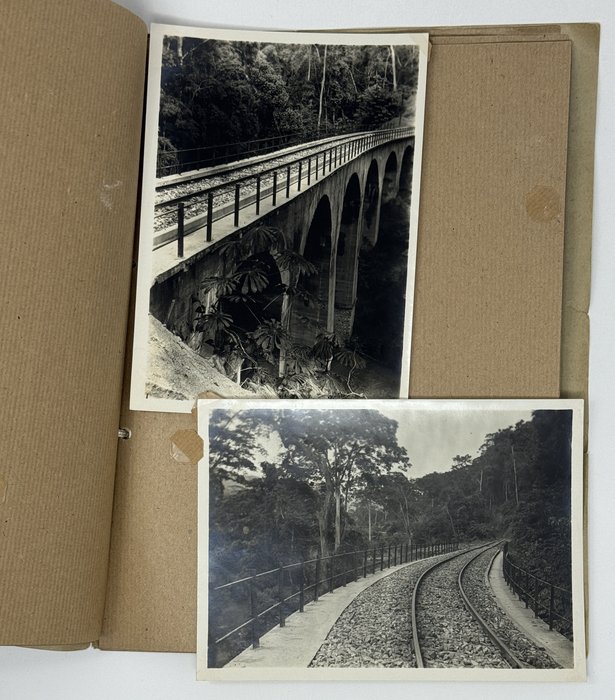Historically significant collection of 48 original gelatin silver photos, documenting the construction of the first line of the Congo-Ocean Railway in French Congo (Republic of the Congo or Congo-Brazzaville) in the early 1930s. Built between 1921 and 1934, the railway, 318 miles (520 km) long, connected Brazzaville, the colony’s largest settlement on the upper Congo River, to Pointe-Noire, on the Atlantic coast, where an ocean port was planned to be built. The construction, based on forced labour, resulted in a massive loss of life of African workers due to harsh work conditions (10-hour shifts, six days a week), industrial accidents, malnutrition and diseases including malaria. The estimated number of total deaths is believed to be over 20,000 people. The area with the heaviest death toll was the Mayombe/Mayumbe Hills east of Pointe-Noire (the hills stretched from 60 to 170 km of the railway line starting from the Atlantic terminus). Heavily forested and traversed by numerous rivers and deep ravines, the Mayombe demanded the construction of “hundreds of small bridges, massive viaducts and a 1,700-meter-long tunnel under Mount Bemba, the longest in Equatorial Africa” (Daughton, J.P. “The Land of the Mayombe doesn’t Want Us:” The Brutality and Folly of the Construction of the Congo-Ocean Railroad; see more).