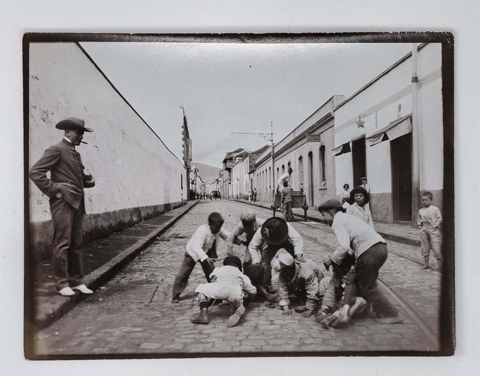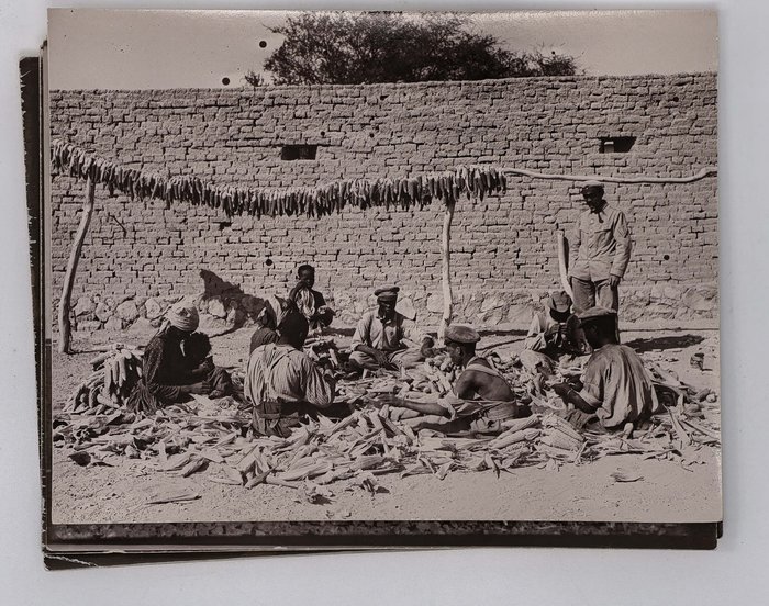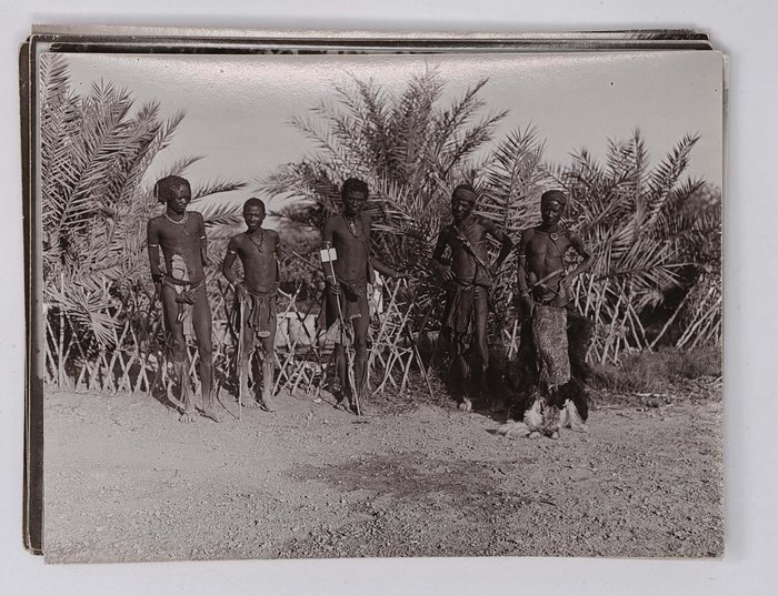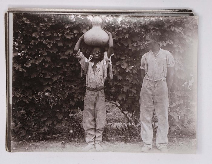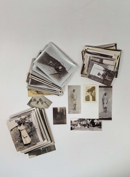 Ca. 180 loose original gelatin silver photos, mostly from ca. 9x11,5 cm (3 ½ x 4 ½ in) to ca. 8x10 cm (3x4 in); ca. 30 images are from ca. 7x10 cm (2 ¾ x 4 in) to ca. 4x5,5 cm (1 ¾ x 2 ¼ in). Two images are captioned in negative (one also dated “22/8, 08” in negative); ca. 18 images with period pencil captions on the mounts. Occasional creases on extremities or corners, a few photos mildly faded, but overall a very good collection of strong interesting photos.