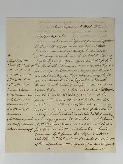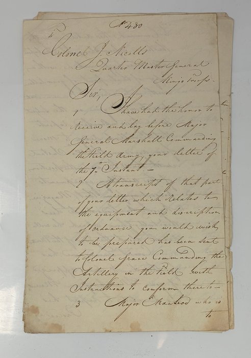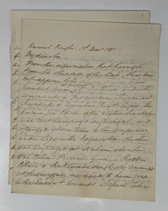 Historically significant collection of eleven original rare manuscripts, providing a valuable insight into the process of preparation of a British advance to the western Kingdom of Nepal in December 1815 in the course of the Anglo-Nepalese War of 1814-1816.