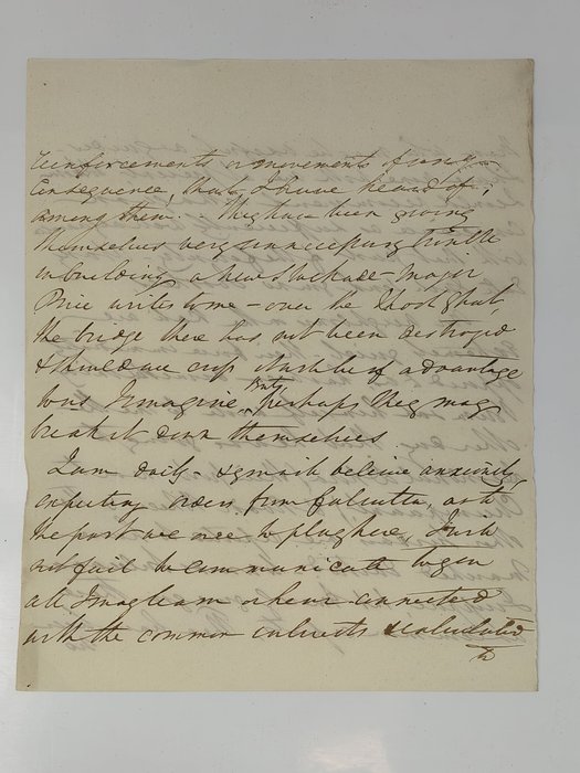I am daily & you may believe anxiously expecting orders from Calcutta, as to the part we are to play here. I will not fail to communicate to you all I may learn or hear connected with the common interests…”